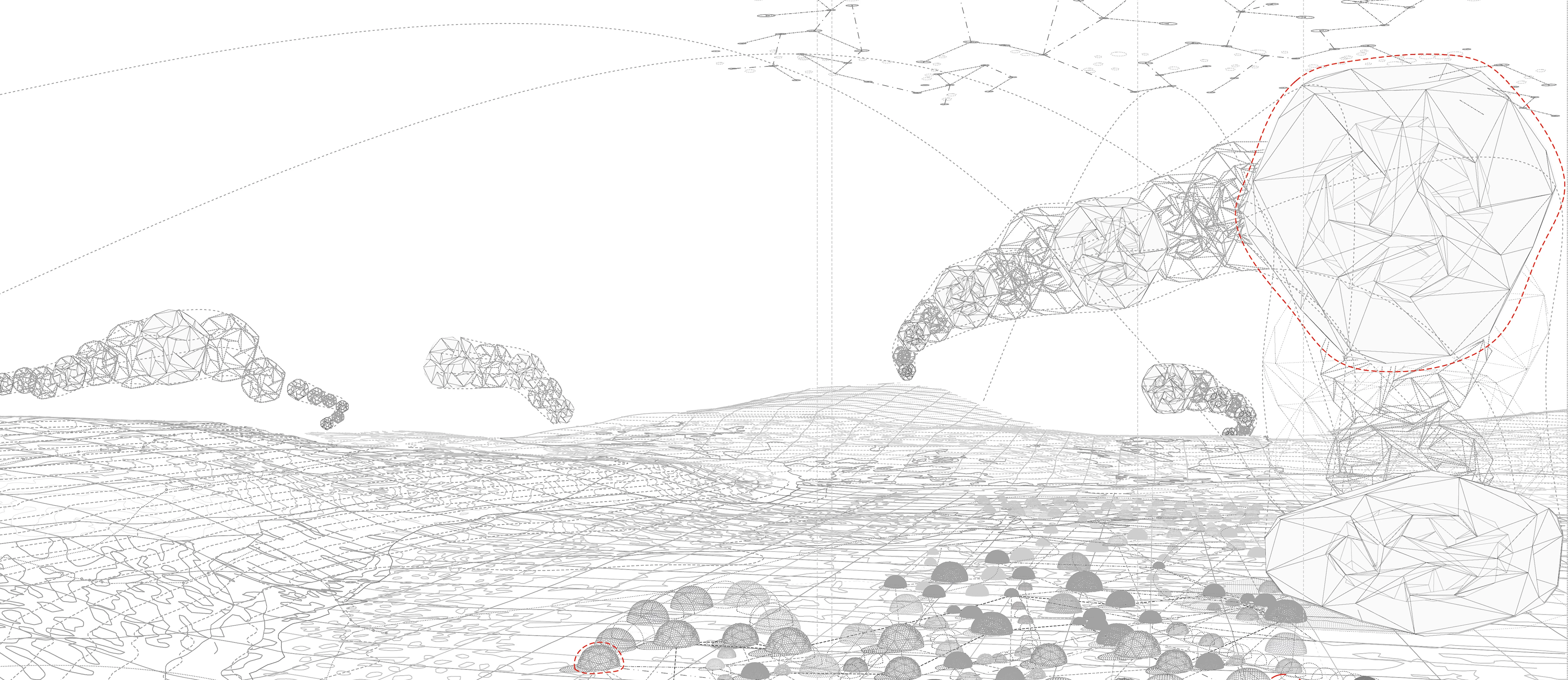 Desarrollado en múltiples escalas, el proyecto plantea una red de artefactos móviles que siguen los impulsos de la bioarquitectura; el O.V.I. es una esfera de doble tensegridad que, como un globo o un dirigible, cambia su forma y altura de vuelo expulsando aire caliente.
