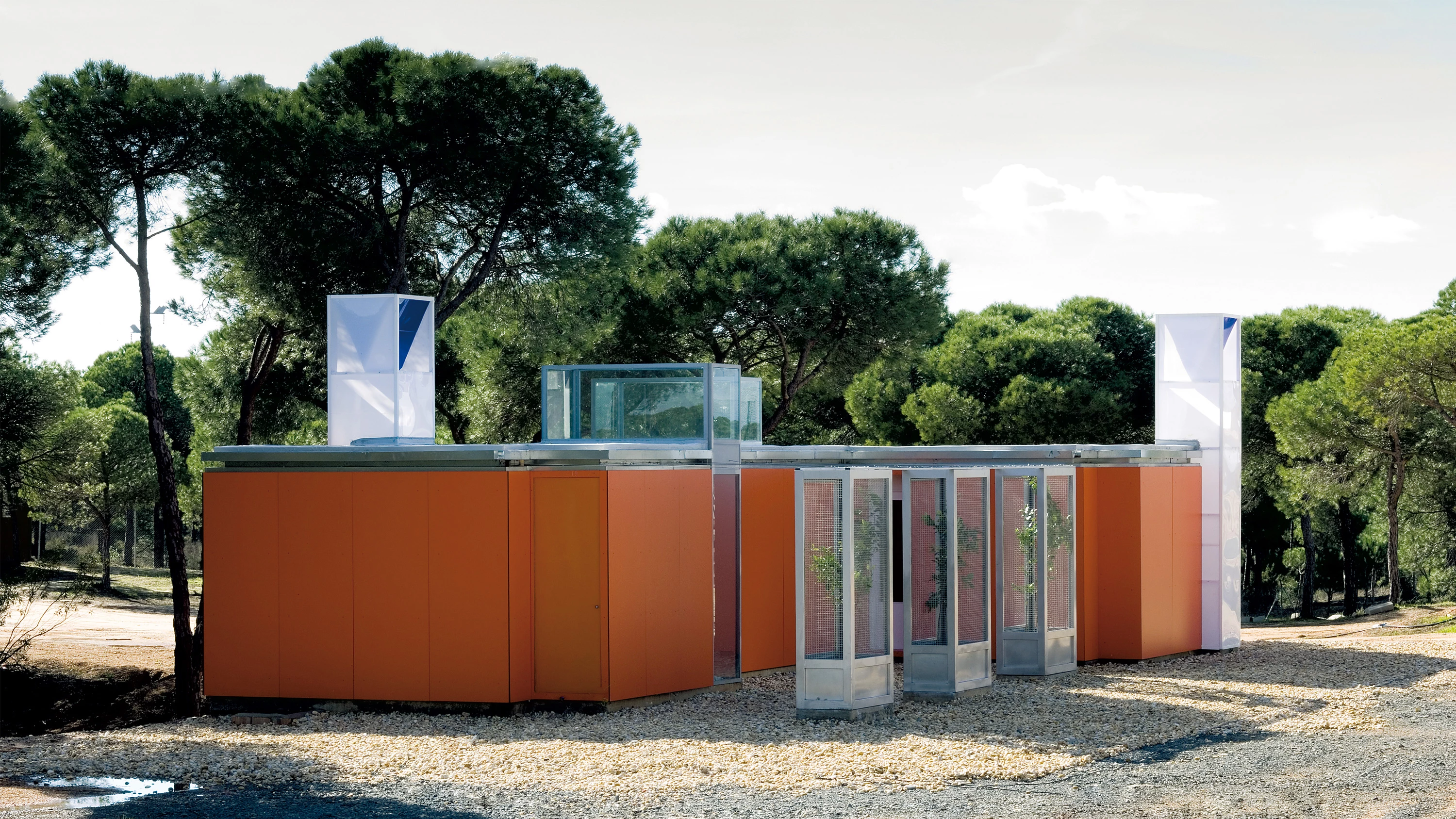 El concurso convocado en 2004 por el Colegio de Arquitectos de Almería para el proyecto de viviendas efímeras para trabajadores temporeros —hasta 30.000 personas viajan a Huelva para la campaña de la fresa, entre febrero y junio— se falló a favor de esta propuesta, que posteriormente logró de la Junta de Andalucía una aportación de 60.000 euros para su materialización. La idea parte de sustituir la construcción por el bricolaje; la durabilidad de las estructuras fijas por la posibilidad de montar y desmontar un edificio delimitado y soportado por muebles. Muebles de 2,40 metros de alto y largo y ancho modular (desde los 90 por 60 centímetros del mueble audiovisual, hasta 240 por 60 centímetros del mueble mesa) que alojan las funciones domésticas: ducha, caldera, lavabo, armario, cocina, fregadero, frigorífico, estantería, inodoro, despensa y cama. Muebles con armazón de perfilería ligera de acero galvanizado conformado en frío, del tipo con que habitualmente se construye la tabiquería de cartón-yeso, revestidos de paneles de cartón yeso con barrera de vapor hacia el interior y cartón yeso hidrófugo con una capa de acabado de tablero de madera cemento hacia el exterior. El suelo es un forjado montado en seco; al ser las luces menores de 3 metros puede prescindirse de la capa de compresión. Sobre el forjado se coloca una base de tableros de contrachapado machihembrados sobre la que se dispone el acabado final. La cubierta ventilada consta de dos capas, una interior de chapa grecada con aislamiento de poliestireno y una exterior de aluminio ondulado. Además de los muebles domésticos aparecen tres muebles ‘especiales’ con función portante y bioclimática: son los muebles-patio, los muebles-andamio y los muebles-torres de ventilación que refrescan el interior y hacen de hitos verticales sobre el mar de plásticos de los invernaderos. El prototipo construido en la localidad onubense de Cartaya puede albergar a ocho trabajadores temporales; agrupando cuatro de ellos se consigue una unidad con 32 plazas... [+]