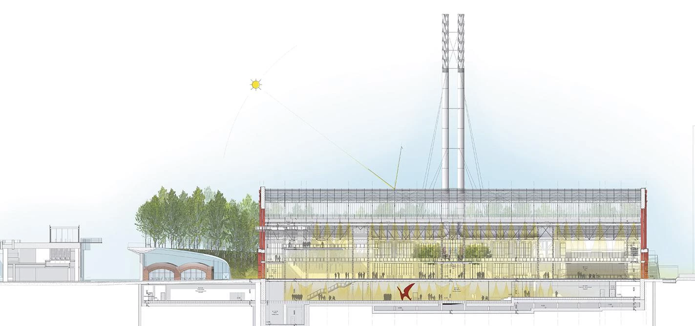Una vez desmantelado el equipamiento técnico, se demolerán las partes añadidas para devolver al edificio su configuración volumétrica y espacial primitiva. Limpia y restaurada, la vieja central albergará nuevas funciones dispuestas de acuerdo a un esquema que resultará semejante al que en su momento organizó las instalaciones del edificio original. En esta disposición, la nave central se convertirá de nuevo en el corazón del enclave, y con este fin se eliminarán todos los elementos que dificulten la percepción de este espacio en toda su longitud.