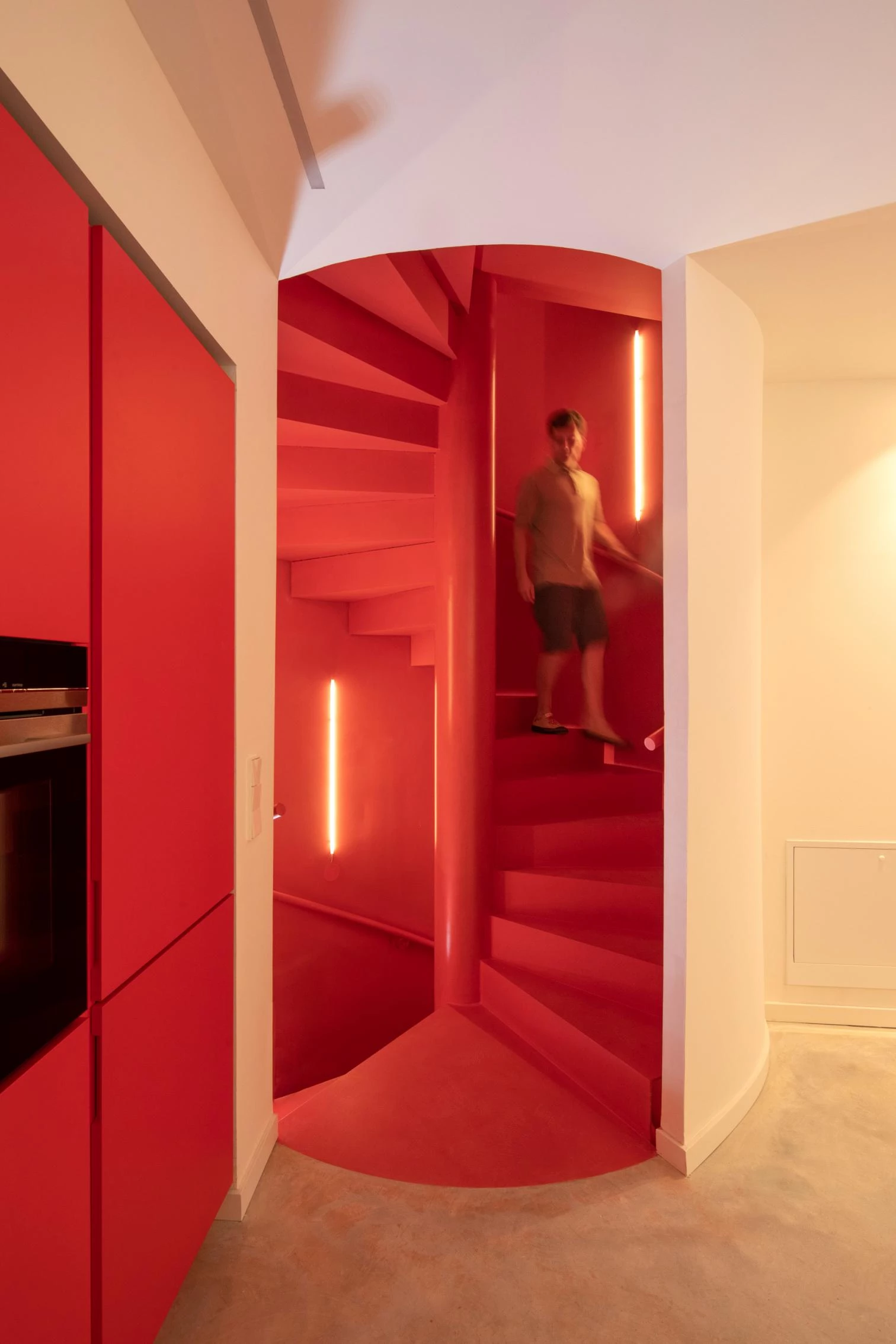 Al lado del Gomila Center se encuentran las casas rojas, conocidas como Las Casitas, un conjunto de viviendas adosadas, que se desarrollan alrededor de un patio trasero. Las fachadas se diseñan con variaciones del color rojo, que se oscurecen en la parte central. En vertical la textura de la fachada se suaviza en las plantas superiores, creando un efecto más rugoso en contacto con la calle.