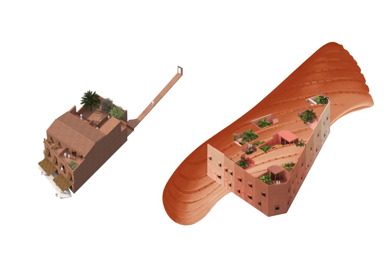 Adyacente a este edificio se encuentra Terra, un edificio de apartamentos construido con bloques de tierra compactada, rematado con una piscina comunitaria en la azotea, que ofrece vistas al cercano castillo de Bellver.