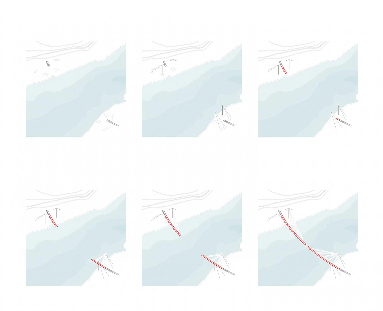 La programación en fases constructivas con un plazo total de 12 meses se plantea en función de diferentes factores: la ausencia de pilas en el cauce del río (de difícil ejecución en este caso debido a la profundidad del lecho del río), las buenas características geotécnicas del terreno (al existir en ambas márgenes un substrato rocoso de naturaleza granítica y elevada capacidad portante), la ligereza del tablero, el procedimiento previsto de avance simultáneo en voladizo desde las dos márgenes y por tratarse de una obra en seco (con excepción de las cimentaciones y los estribos).