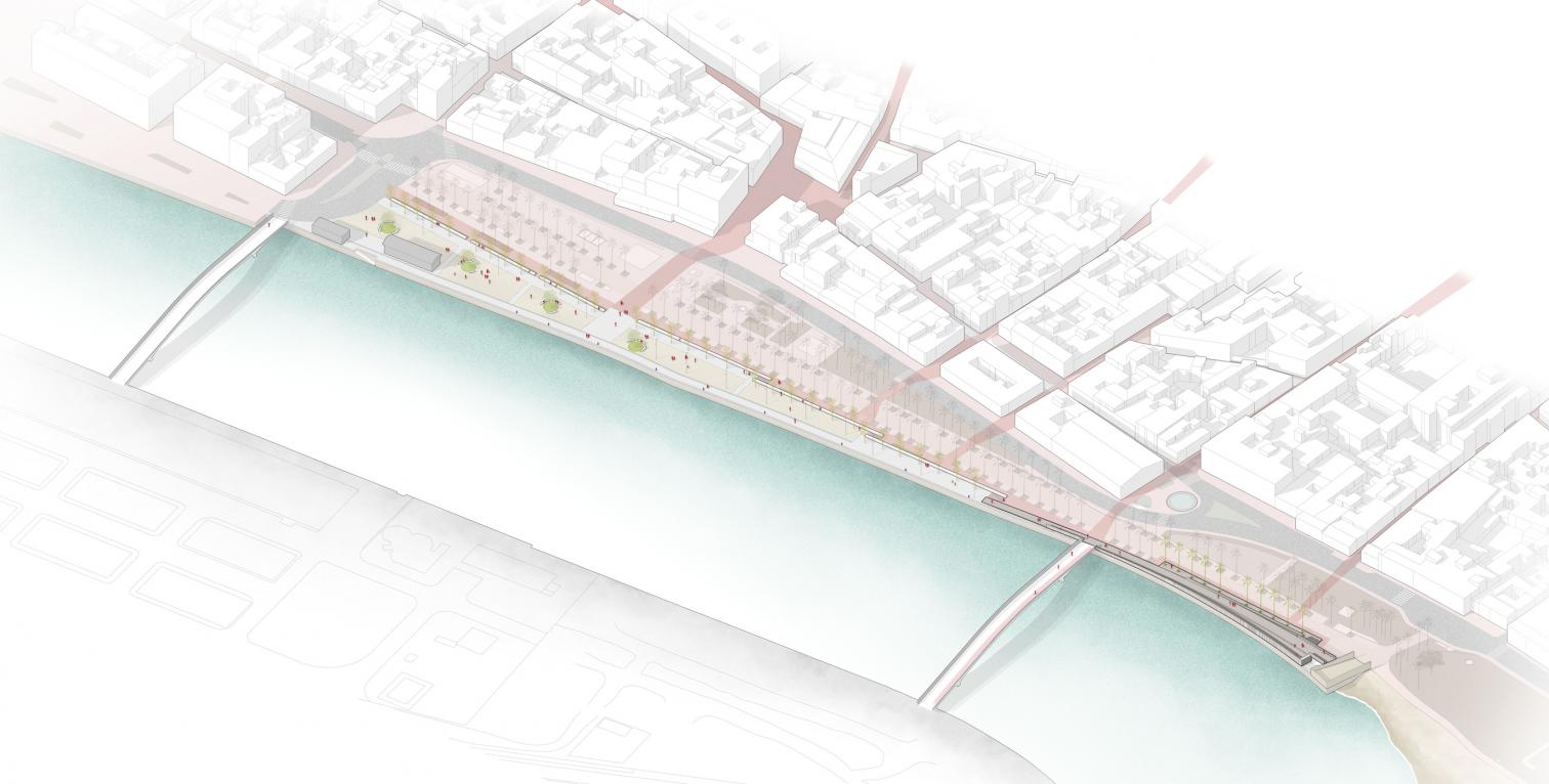 Además, el uso de pavimentos drenantes y la incorporación de cargadores solares para patinetes subrayan la vocación ecológica del diseño, que pretende no solo recuperar la ribera, sino convertirla en un generador de nuevas ecologías urbanas.