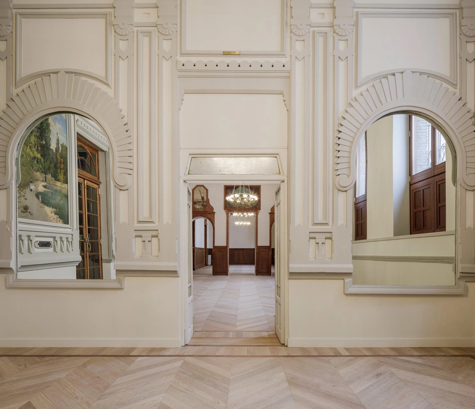 En el Despacho de Azaña se continua la restauración y puesta en valor de la colección pictórica, así como la integración del decorado neoegipcio, traído directamente de la última función de Aida en el Teatro Español. Una capa más de la historia informal del Ateneo que refuerza su naturaleza híbrida y ecléctica.