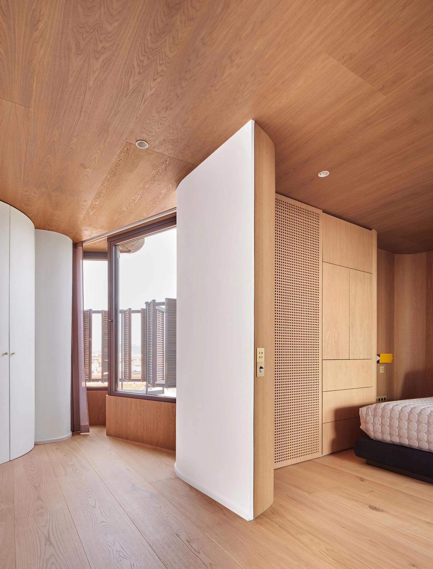 Studio.NojuMedirse a los maestros puede resultar intimidante, pero afortunadamente, como apuntaba Thomas Bernard, estos «al final nos dejan solos». Solo así puede superarse la angustia de la influencia que ejercen, sin que el respeto que se merecen coarte la libertad propositiva, como prueba la remodelación de un dúplex en Torres Blancas. Con minuciosidad arqueológica, a la luz de la documentación original se han suprimido añadidos superfluos para recuperar la configuración abierta a las terrazas y potenciar las pantallas estructurales curvas, todo ello sin dejar de introducir un catálogo de soluciones materiales más contemporáneas que releen la sensualidad ambarina soñada por Sáenz de Oíza para su ciudad jardín en vertical.