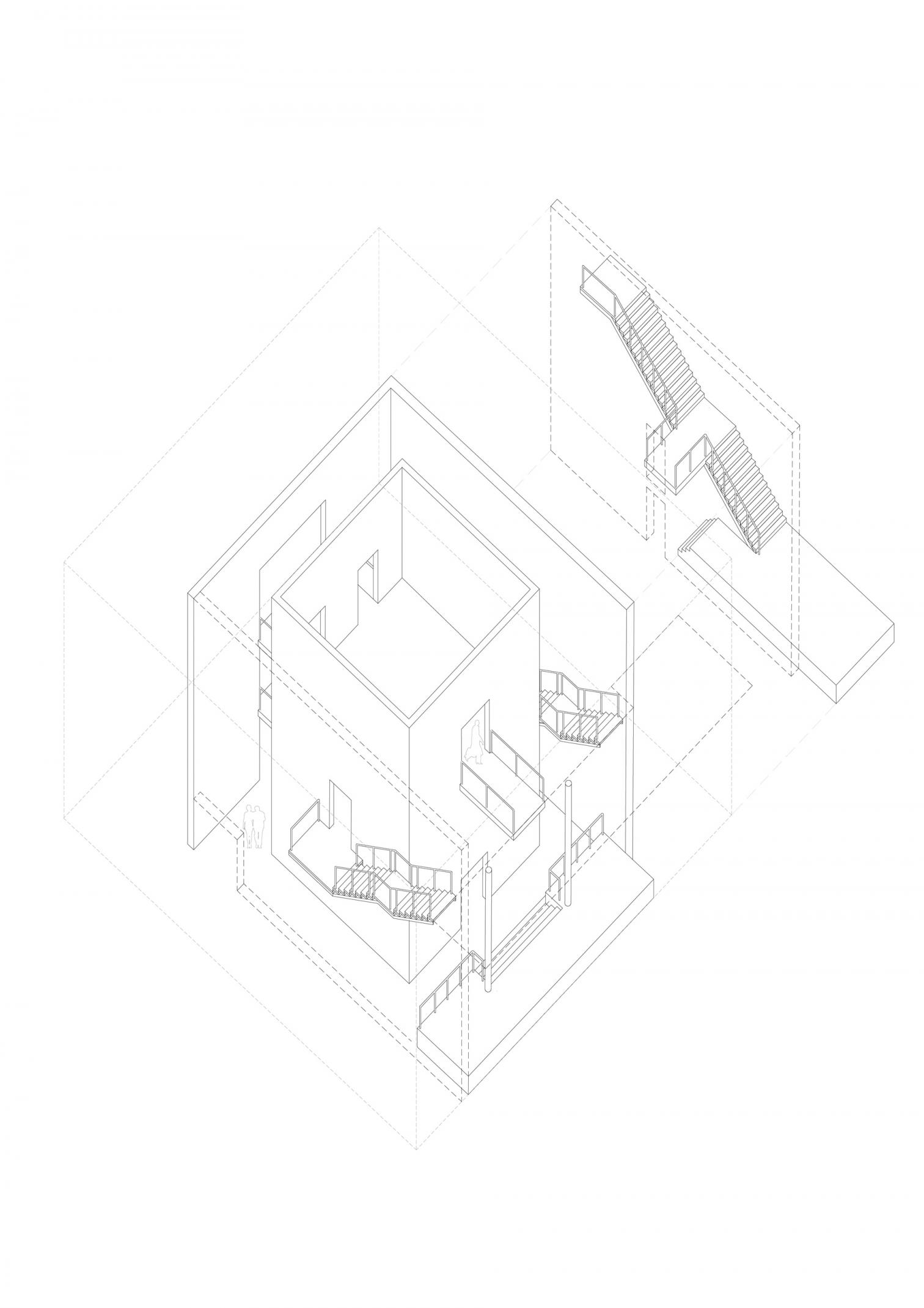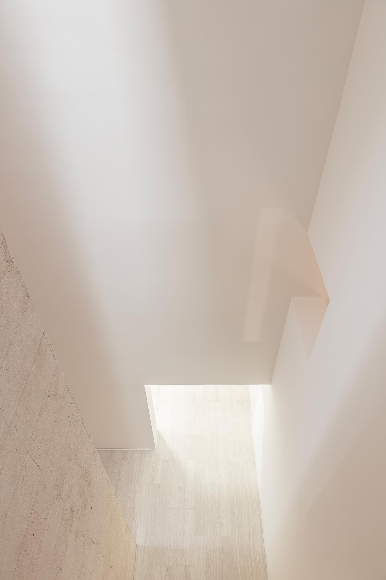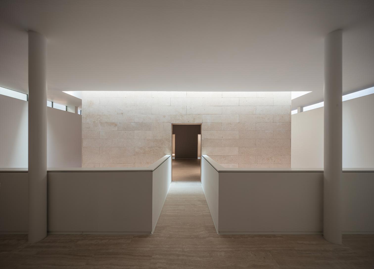 La intervención arquitectónica ha reinterpretado los espacios existentes desde una perspectiva contemporánea, redefiniendo el acceso y el sistema de circulaciones para hacerlos más diáfanos y accesibles. Se eliminaron los elementos que dificultaban la fluidez del recorrido, permitiendo que la luz natural —filtrada por las aperturas cenitales que envuelven el cubo central de piedra— recobrara su protagonismo. La supresión de las escaleras originales, ahora reubicadas en el nuevo núcleo de comunicaciones, ha transformado la percepción del espacio: una reorganización vertical que aligera visualmente el conjunto y refuerza la conexión entre niveles.