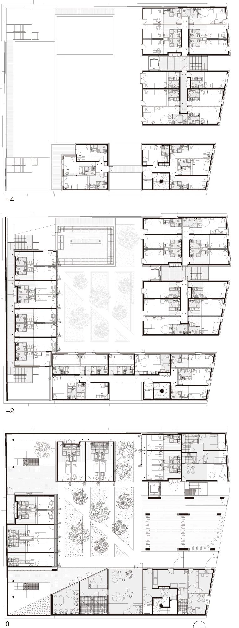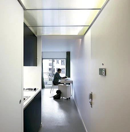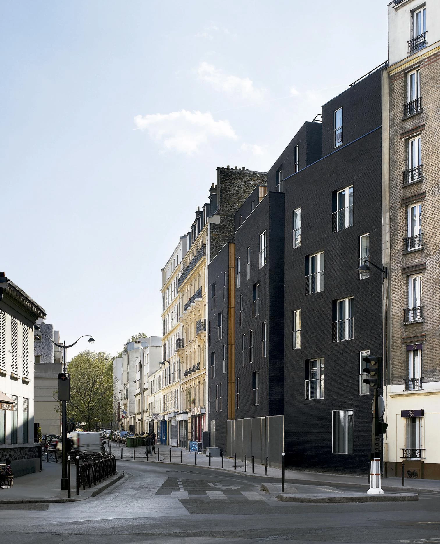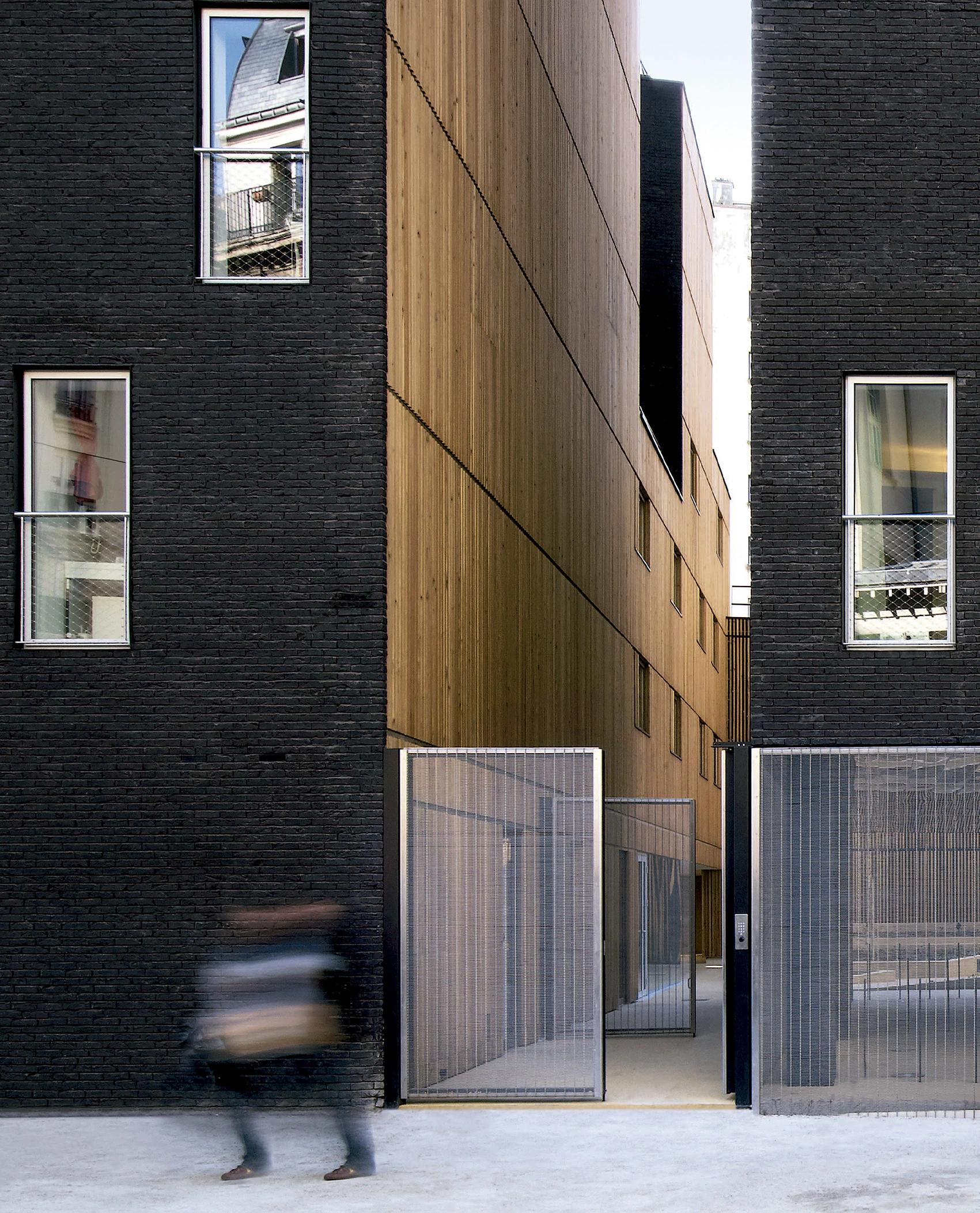 La población del barrio parisino de La Chapelle es tan heterogénea como su arquitectura. Se trata de una zona en la que conviven edificios de origen ‘haussmaniano’ junto a naves y talleres de la industria ligera dispuestos a lo largo de las vías de la estación ferroviaria de Gare de l’Est. Por un lado, la nueva residencia de estudiantes debía relacionarse con su entorno urbano y contribuir a la intensa actividad de las calles del barrio; por otro, proporcionar un espacio de concentración y estudio, así como generar un sentimiento de comunidad entre sus residentes. Este doble objetivo se modula mediante juegos de densidades y saltos de escala, regulados por la restrictiva normativa vigente.