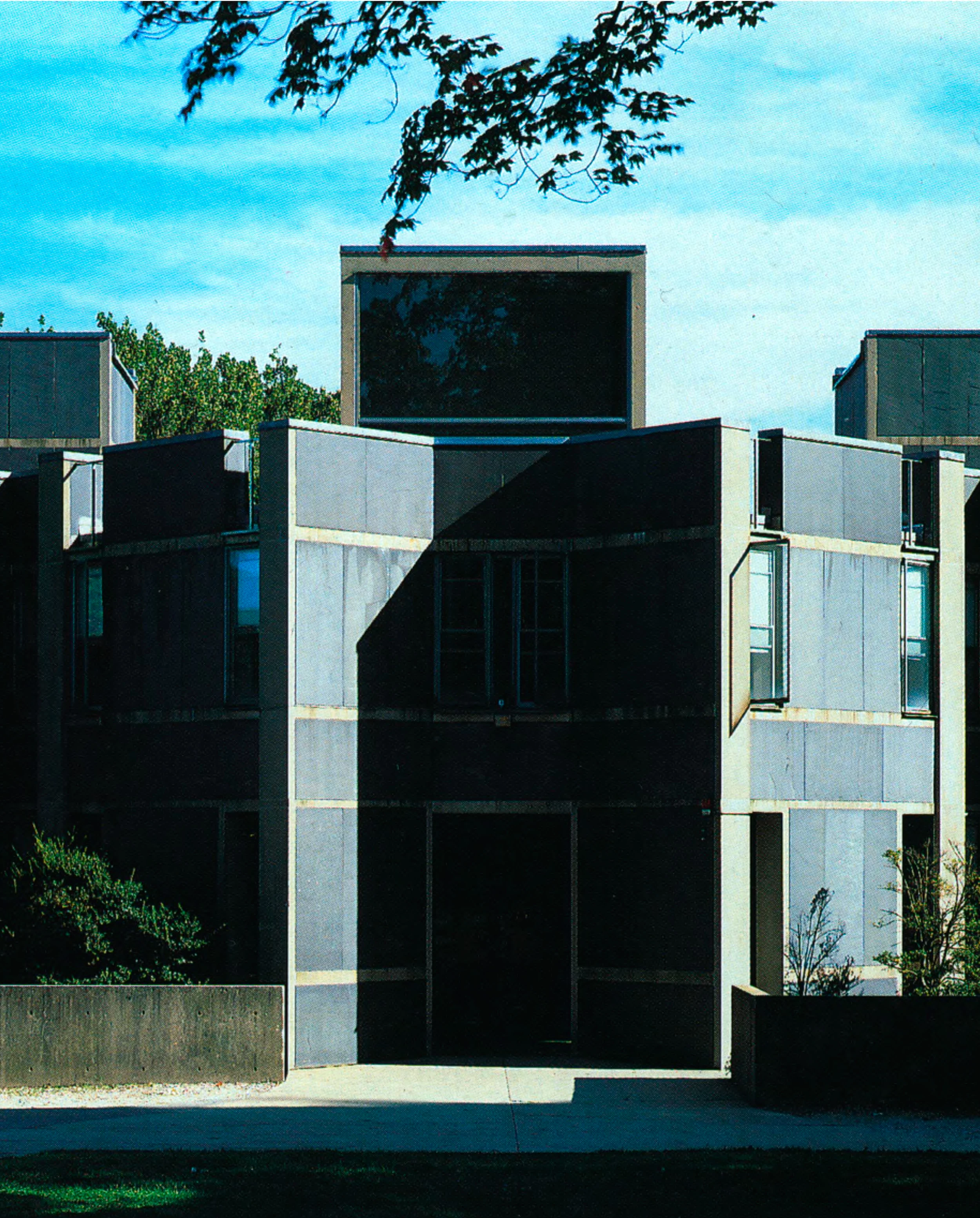 El proceso de diseño de esta obra tuvo unas características singulares, pues se desarrolló a partir de dos planteamientos iniciales completamente diferentes que evolucionaron de forma paralela antes de converger en una solución final, síntesis de ambas. El primer concepto estaba basado en una rigurosa malla octogonal similar a la desarrollada en el edificio principal del Centro Judío de Trenton y fue desarrollado por Anne Tyng, la colaboradora de Kahn, mientras que el segundo, elaborado por el propio arquitecto junto con David Polk, atendía mucho más a la relación entre espacios públicos y privados, y a la articulación entre formas geométricas puras, temas que constituían la preocupación del maestro en el momento. El diseño final, con los tres bloques cuadrados unidos en diagonal, resuelve en un esquema claro y contundente tales relaciones y articulaciones, así como la necesidad proclamada por Kahn de una imagen exterior monumental, muy acorde con la fascinación que por entonces mostraba por los castillos escoceses. La oposición de las dientas al hormigón visto y al ladrillo en los paramentos exteriores, y la insuficiencia del presupuesto para el uso de piedra natural llevaron a la elección del chapado de pizarra local, que contribuye al aspecto sombrío del conjunto.