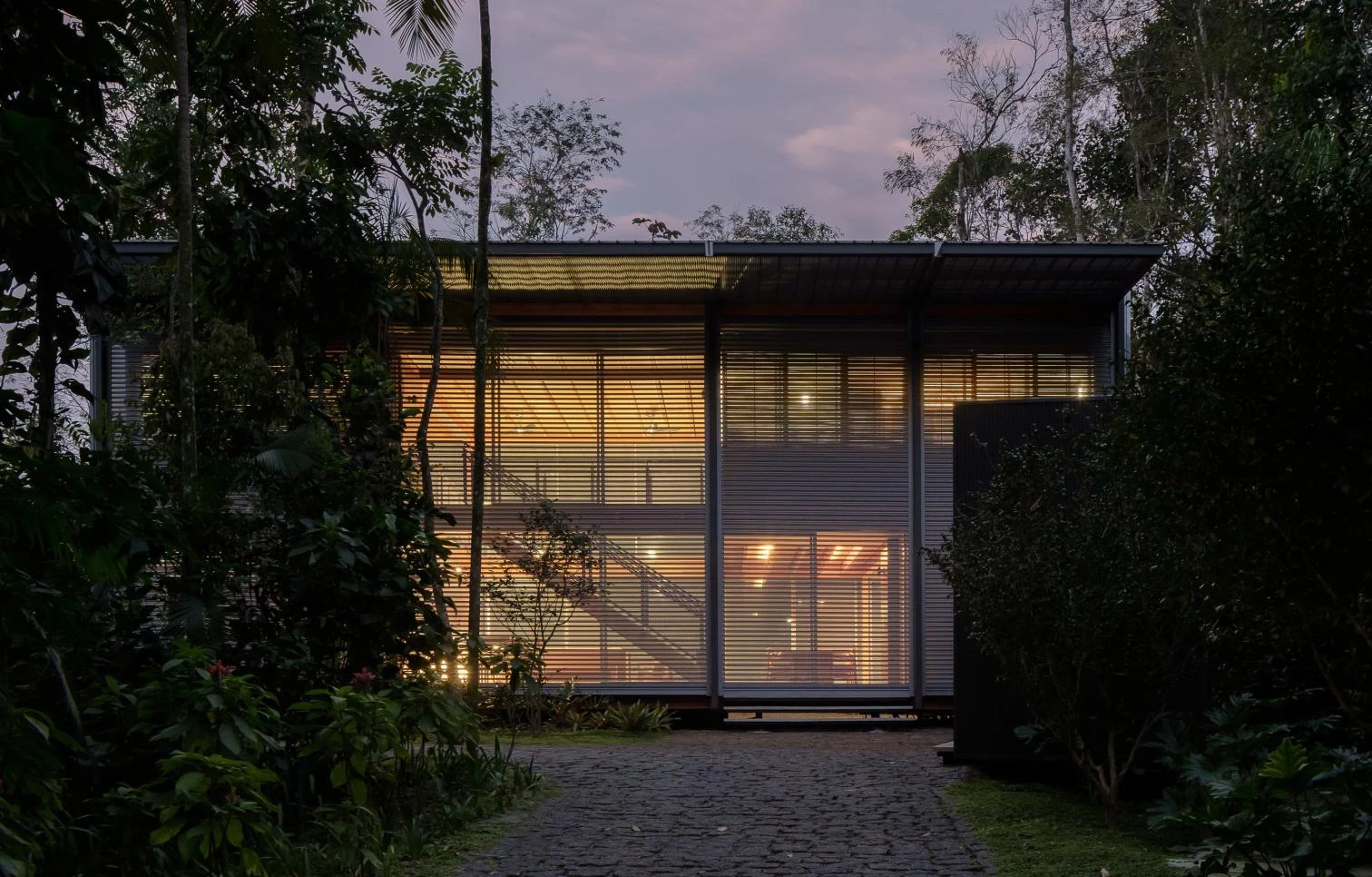 Andrade Morettin ArquitetosUbicada en la costa norte de São Paulo, esta casa con 240 metros cuadrados construidos se sitúa a pocos metros del mar, permaneciendo oculta entre un bosque frondoso. El volumen se abre al exterior con puertas correderas, y deja pasar la luz natural a través de paneles de policarbonato y vidrio. Las dos fachadas principales presentan amplios aleros y cierres metálicos enrollables.
