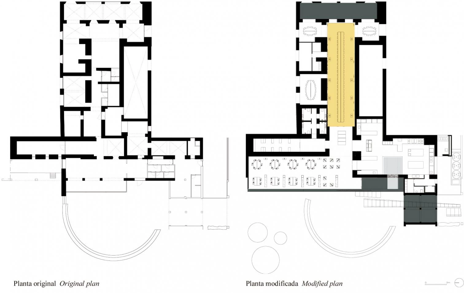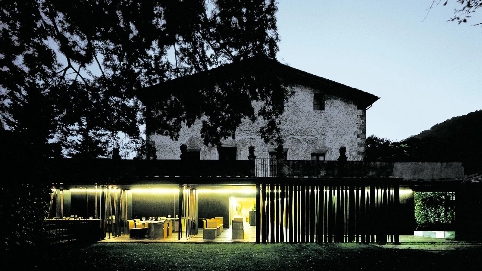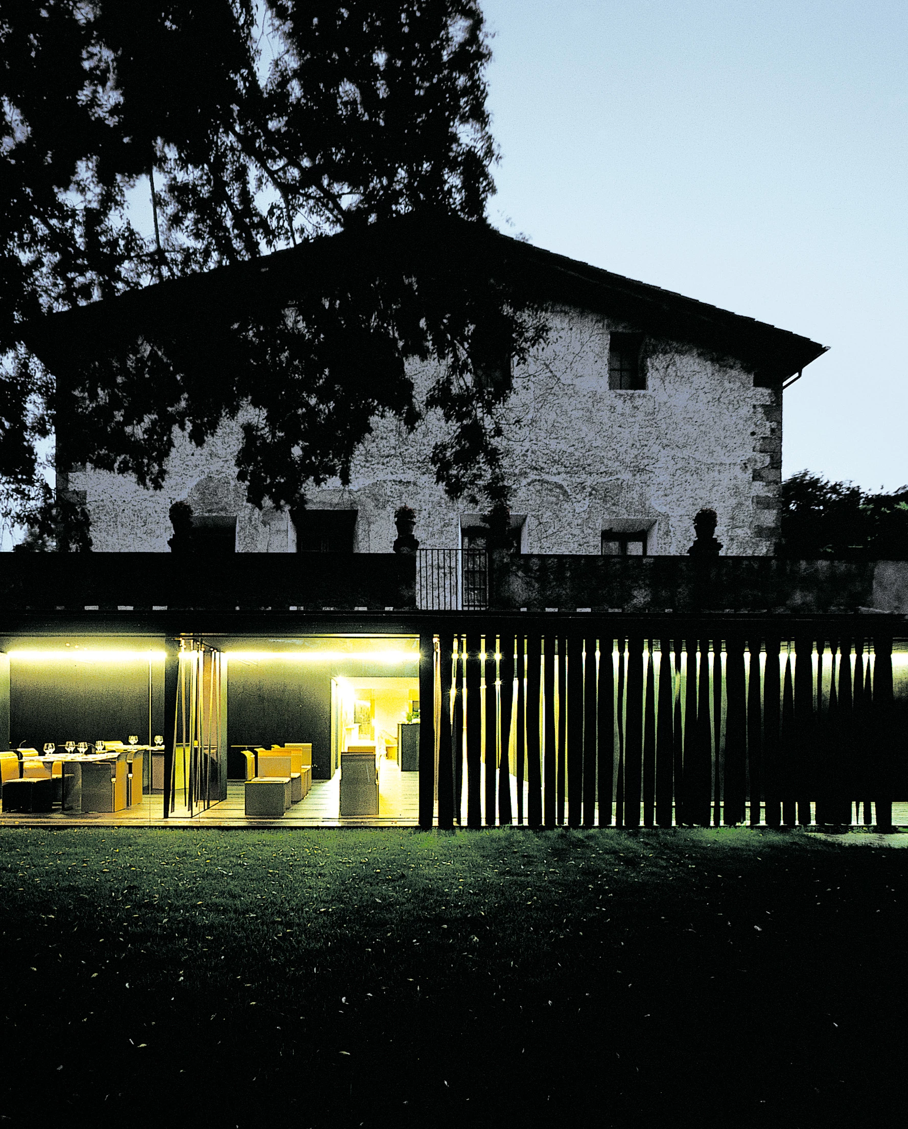 Una casa de campo centenaria, situada dentro de un recinto amurallado, fue el lugar elegido para albergar un restaurante cuyo diseño conjuga metáforas del mundo rural y del gastronómico. Tres naves dispuestas a lo largo de una planta basilical son objeto de una meticulosa rehabilitación donde se integran ambientes con diferente iluminación y densidad espacial, redistribuyendo comedores, porches y zonas de estar. Las divisiones interiores se modulan respetando la configuración estructural original, pero consiguiendo un espacio más diáfano y abriendo las vistas al exterior.