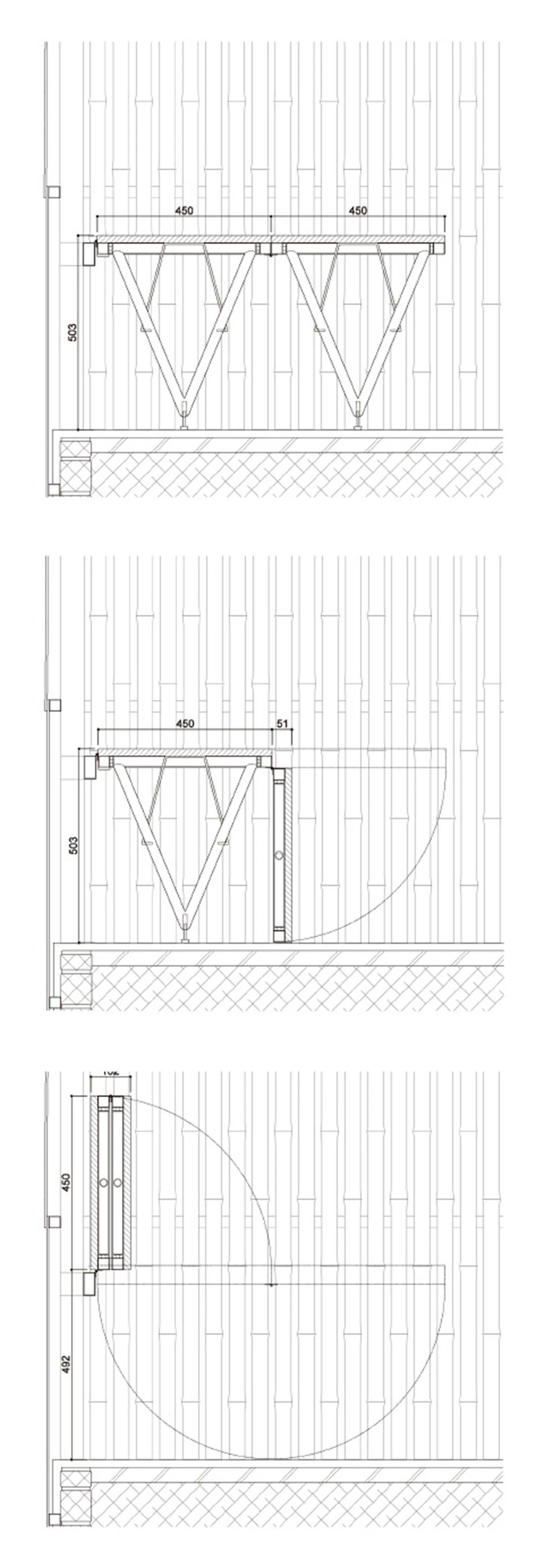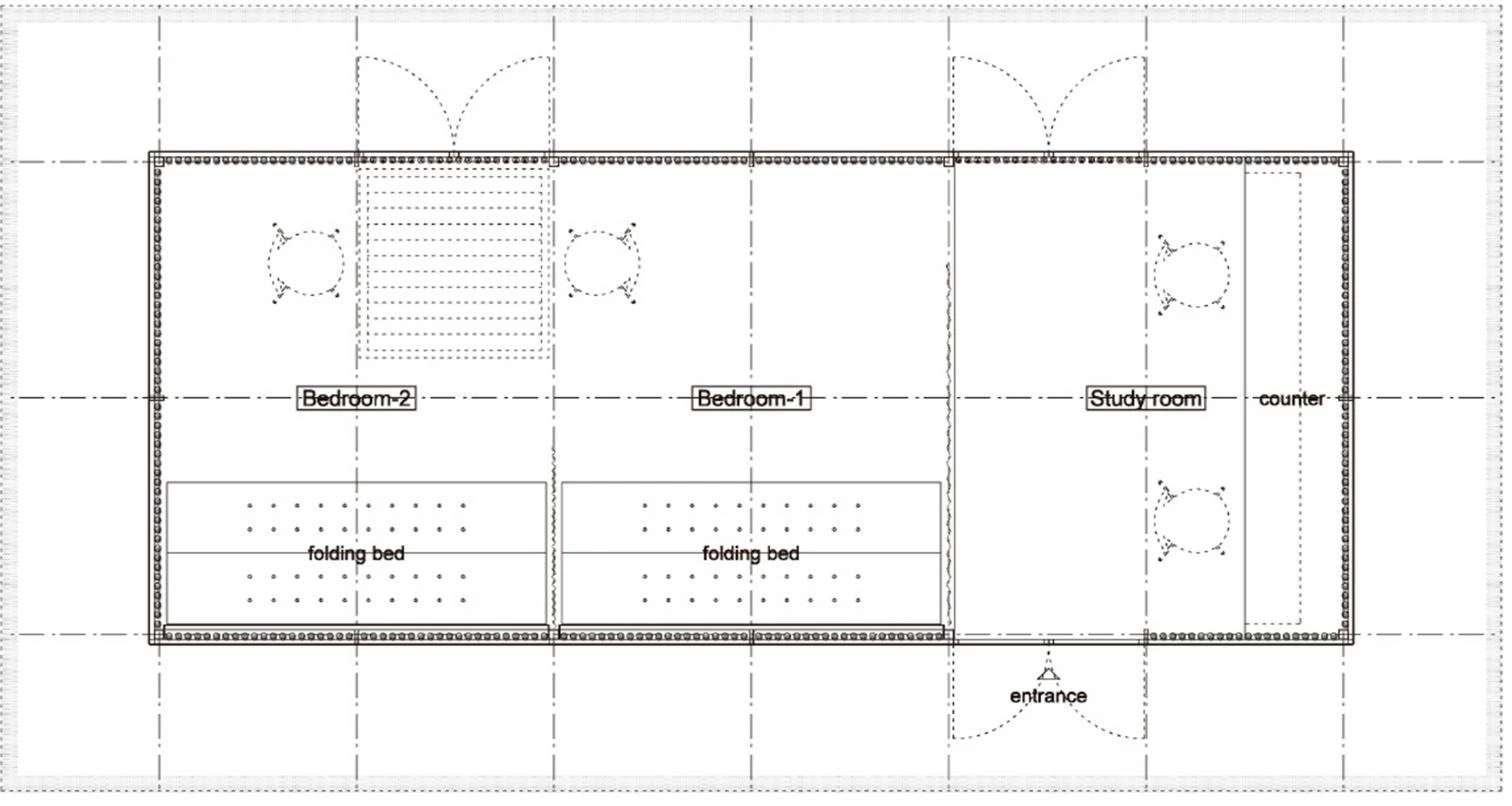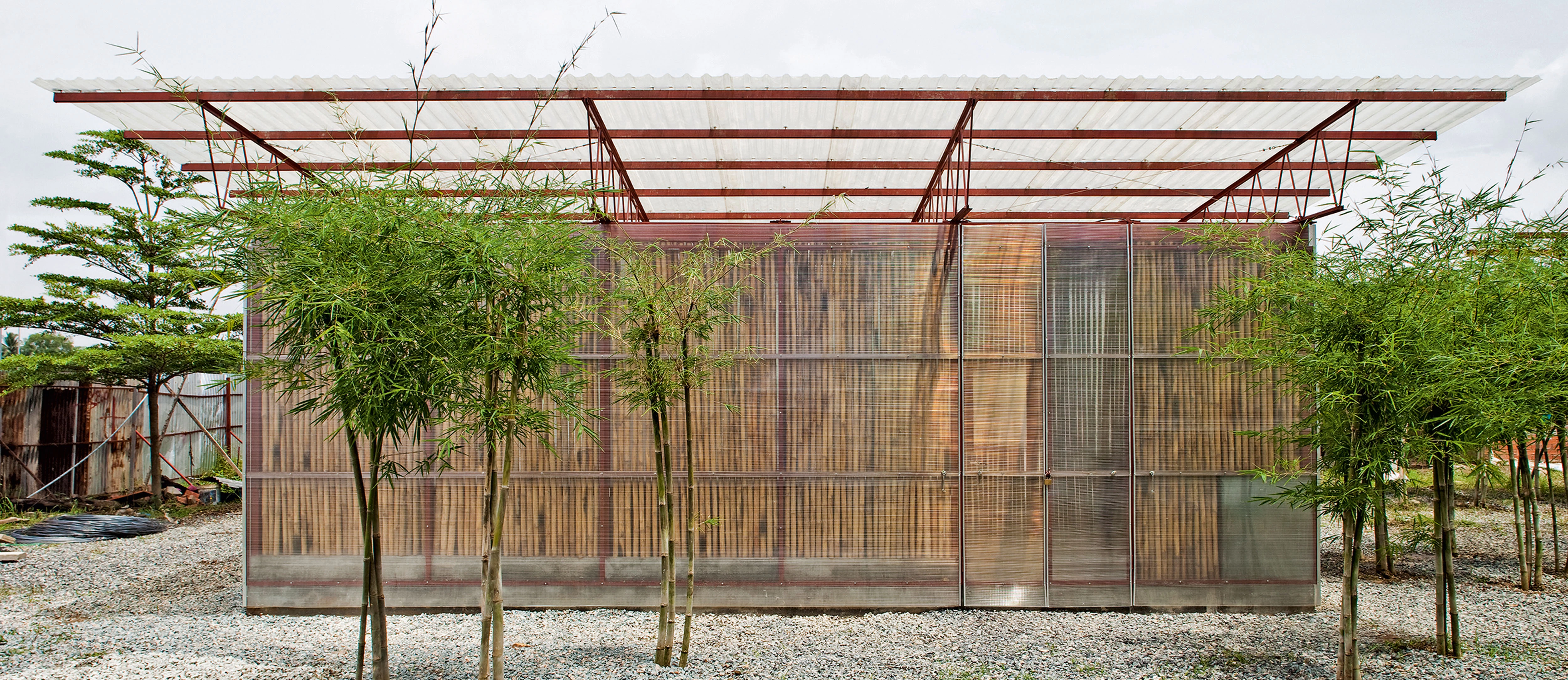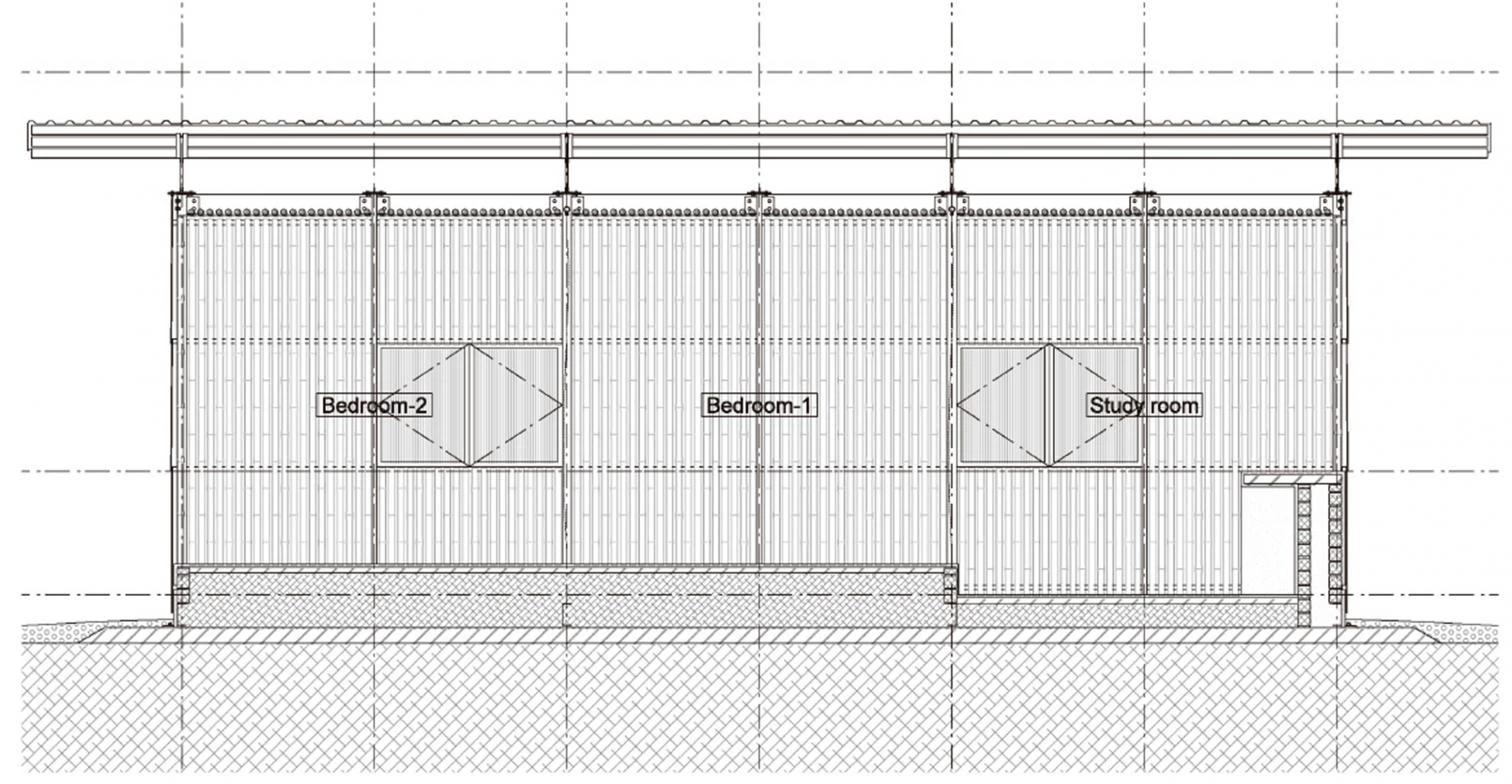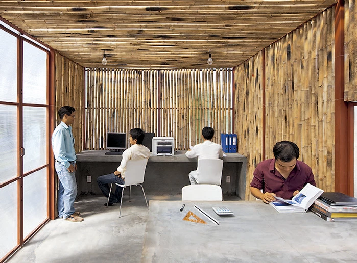 Tanto el modelo de casa como el de oficina cuentan con cubiertas de fibra de vidrio y fachadas de policarbonato revestidas con bambú hacia el interior, cuyo espacio se subdivide mediante cortinas y diferentes cotas de suelo.