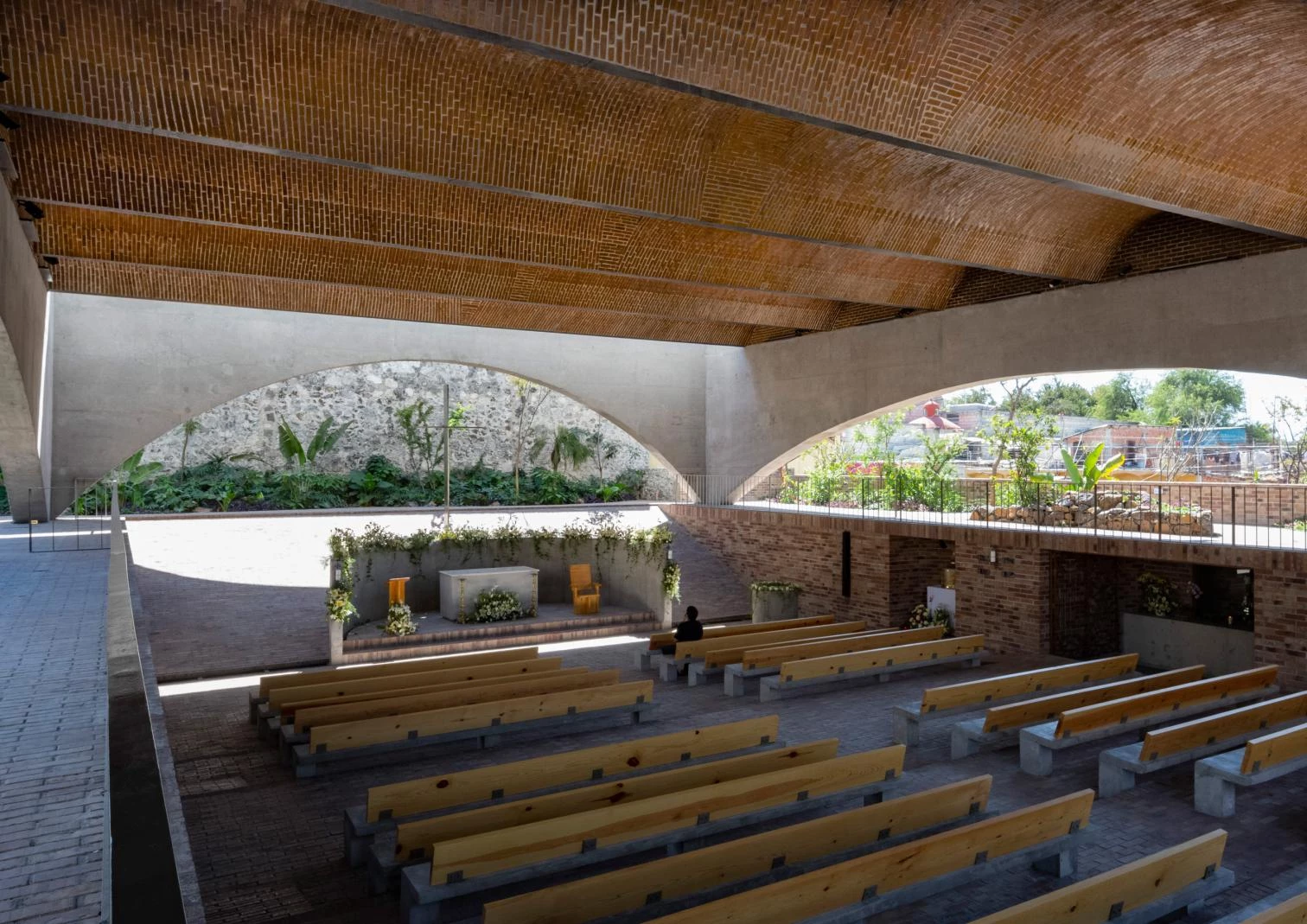 El 19 de septiembre de 2017, la ciudad de Jojutla, en el estado mexicano de Morelos, sufrió un terremoto que destruyó más de 2.600 viviendas, dejando en ruinas casi todas las infraestructuras públicas. El equipo compuesto por AGENdA Agencia de Arquitectura | Camilo Restrepo (Colombia) y la firma de Derek Dellakamp y Jachen Schleich (México), con Francisco Eduardo Franco Ramírez, fue el encargado de levantar el Santuario del Señor de Tula, un centro de culto con más de cinco siglos de historia. Con un área construida de 450 metros cuadrados, el proyecto se desarrolla a partir de una gran cubierta compuesta por bóvedas de ladrillo, soportadas por una estructura de hormigón resuelta con arcos apoyados en las esquinas. De esta manera, se permite el paso del aire y la entrada de luz natural. Retomando la tipología de la capilla abierta, el escalonamiento del suelo desde el atrio hacia el altar aporta privacidad sin perder el contacto visual con el entorno.