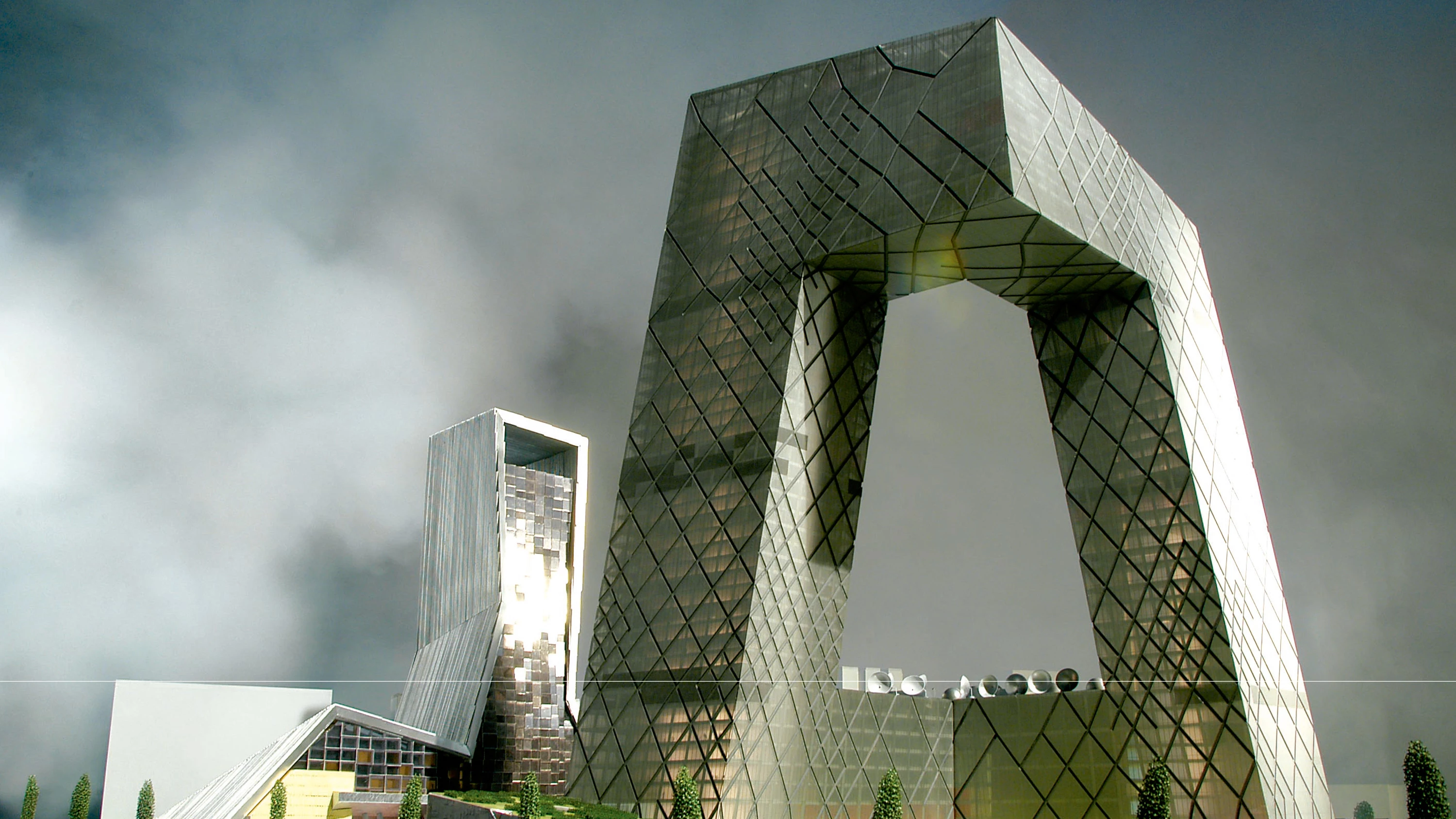 Como todo evento mediático que se precie, la transformación olímpica de Pekín para el 2008 necesita, además de nuevas infraestructuras y de nuevas instalaciones deportivas, de una poderosa televisión que difunda el acontecimiento por todo el mundo. Con ese propósito, en un solar de 10 hectáreas situado en el distrito financiero de la capital, se levantarán dos rascacielos que responden a las especificaciones del nuevo programa. El primero, que albergará la sede de la nueva televisión china (CCTV), configura un increíble bucle de 230 metros de altura en el que quedan interconectadas las actividades informativas, las de producción y las de retransmisión con las administrativas. Enmarcado por el gigantesco hueco que crea este bucle edificado, un segundo rascacielos de menor altura y con forma de bota, el centro cultural de la televisión, (TVCC) combina el programa hotelero —situado en la parte vertical— con los estudios destinados a conciertos, el teatro y las presentaciones televisivas —que ocupan la parte horizontal—. Finalmente, un parque mediático situado en una manzana adyacente y destinado al rodaje y al entretenimiento completa el conjunto.