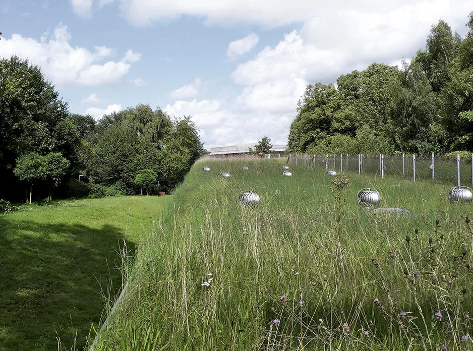 La sede de la compañía de televisión NTR (antes denominada RVU) se sitúa en el campus de empresas de uno de los canales holandeses de emisión pública, junto a la Villa VPRO. Aunque la normativa permitía levantar hasta cuatro alturas en el lugar, construir un edificio masivo de esas características rompería la conexión visual y ecológica de la ciudad y el campus. Por ello, el edificio toma la forma de una pastilla alargada de una única planta que se adapta a la topografía para minimizar su efecto sobre el área verde donde se emplaza.