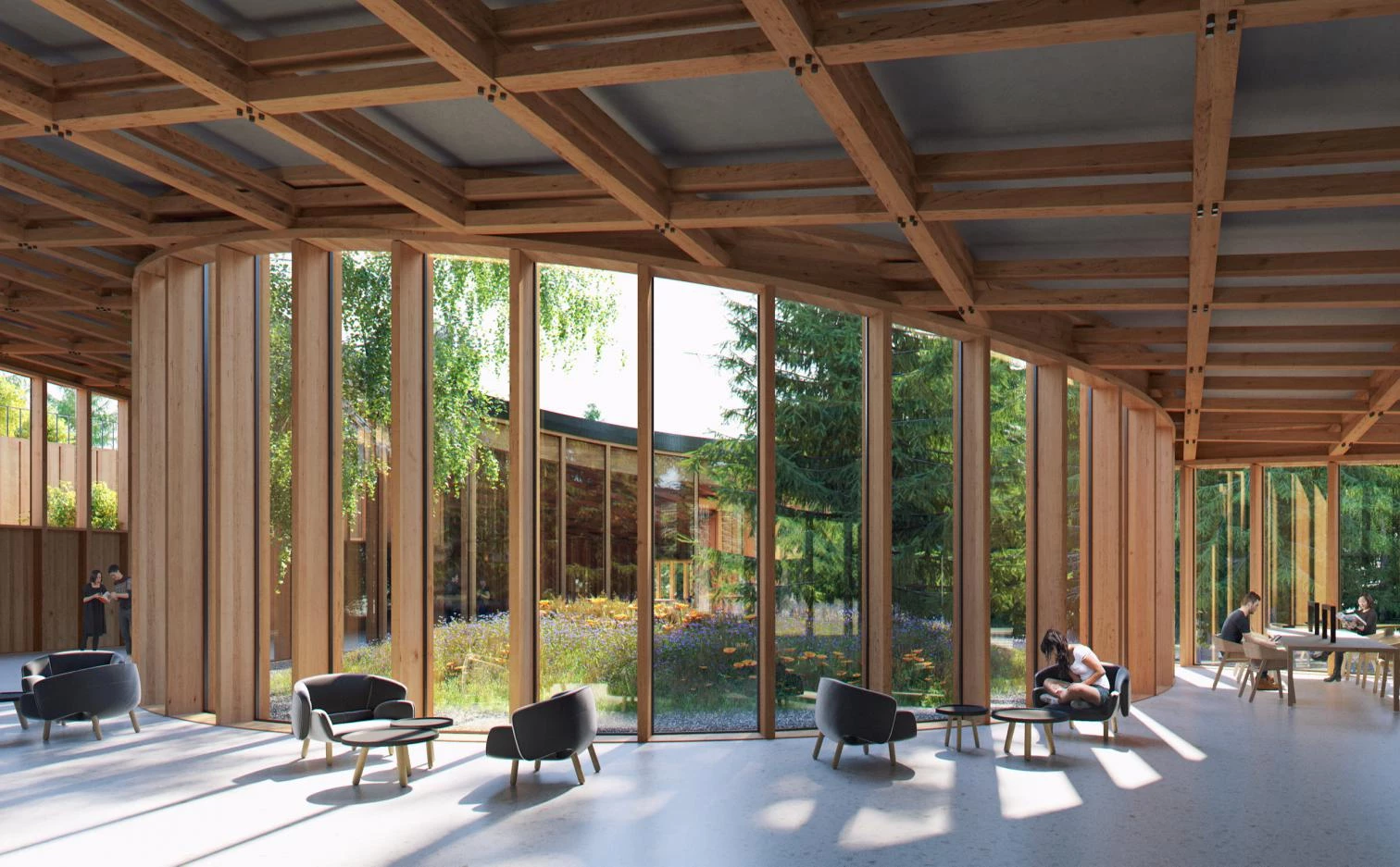 Bajo una amplia cubierta de madera se reúnen aulas, auditorios, una biblioteca y apartamentos. El edificio principal, denominado 'Ágora Senezh', interconecta los espacios, promoviendo encuentros entre los alumnos, los profesores, el personal y los invitados. El complejo se expande hacia el parque integrando la arquitectura dentro del paisaje natural. La zona del parque es un área extensa que acoge una amplia gama de actividades al aire libre: rutas para bicicletas y senderismo, pistas deportivas, un cine y un espacio para conciertos.