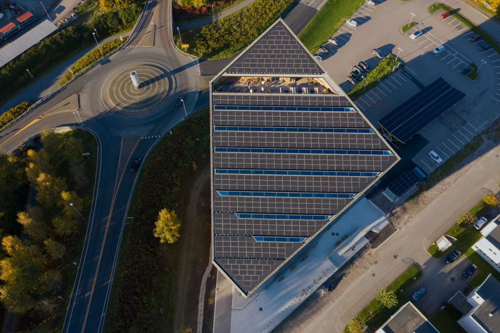 La firma de Oslo Snøhetta ha diseñado —junto a las compañías R8 Property, Skanska y Asplan Viak— estas oficinas para reducir su consumo energético y producir más energía de la que gastará durante su vida útil (estimada en sesenta años), incluida la construcción, la demolición y la energía gastada en los materiales utilizados para levantar el edificio. El volumen creará suficiente energía renovable a partir de células fotovoltaicas —256 000 kWh cada año— como para vender el excedente a la red eléctrica.