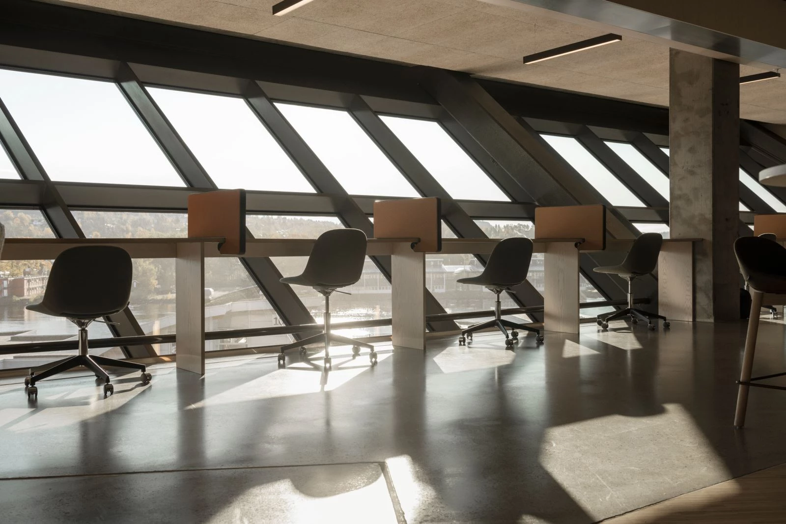Los materiales de Powerhouse Telemark han sido seleccionados por sus cualidades ambientalmente sostenibles. El ‘hormigón ambiental’ de la estructura, expuesto en el interior del edificio, utiliza menos energía en su producción y genera menos dióxido de carbono que el hormigón tradicional.