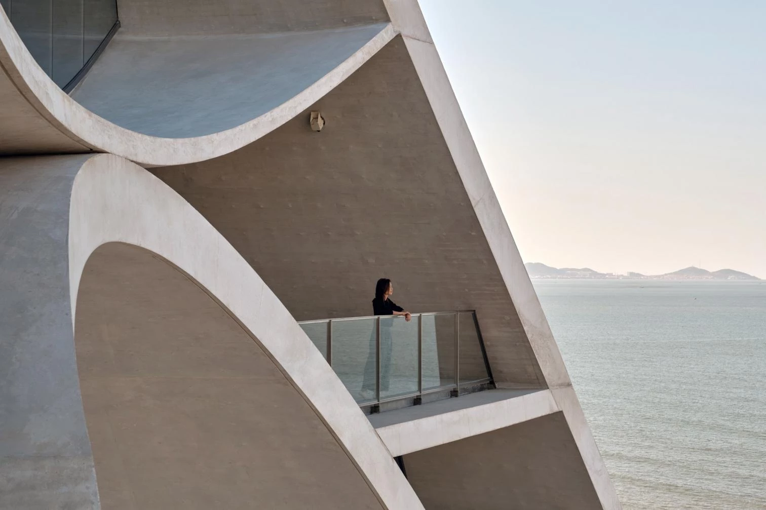 Con 50 metros de altura, este centro cultural con forma cónica ha sido construido considerando la trayectoria cambiante del sol a lo largo del año. Ubicada en Yantai, en el noreste de China, la Sun Tower está concebida como un reloj solar gigante, compuesto por dos capas de hormigón conectadas. En la parte inferior se sitúa un anfiteatro cóncavo que mira al mar, perforado por un túnel que atraviesa el volumen. Los espacios expositivos están dispuestos en un recorrido sinuoso a lo largo de las rampas ascendentes. El conjunto está coronado por una biblioteca y un mirador con un óculo, que permite la caída directa del agua de lluvia en un estanque.