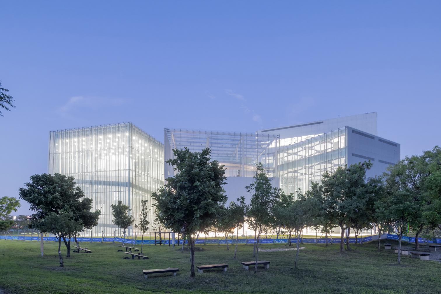 Situado dentro del Central Park de Taichung con 67 hectáreas, este gran complejo cultural se articula con ocho volúmenes cúbicos de diferentes tamaños. Su disposición, aparentemente aleatoria, genera patios, terrazas y vacíos que permiten que el paisaje penetre en el edificio y que las actividades interiores se asomen hacia el parque.
