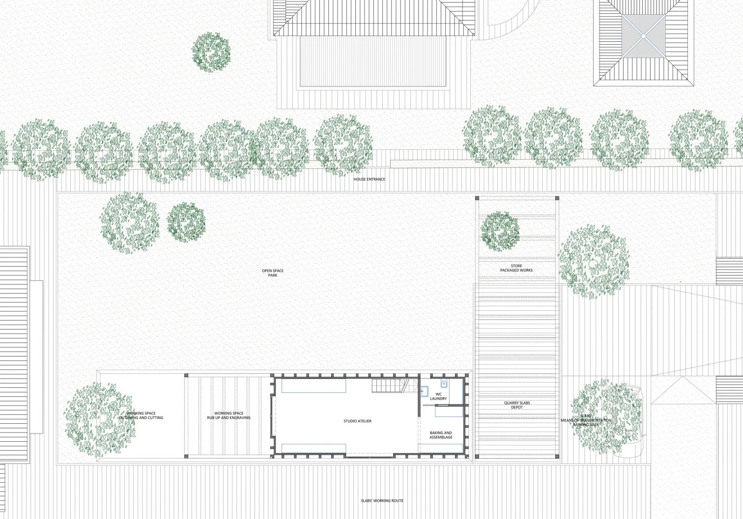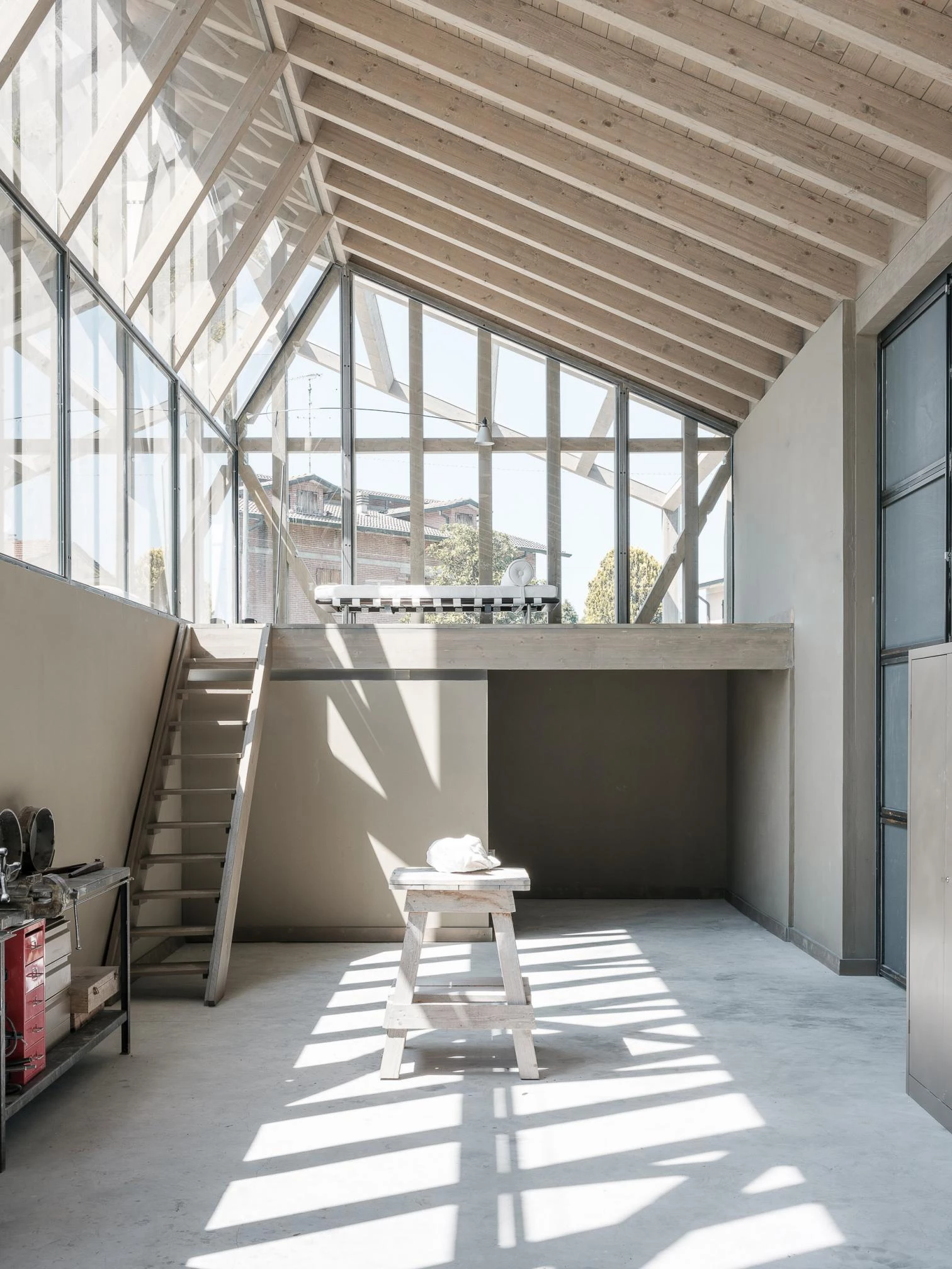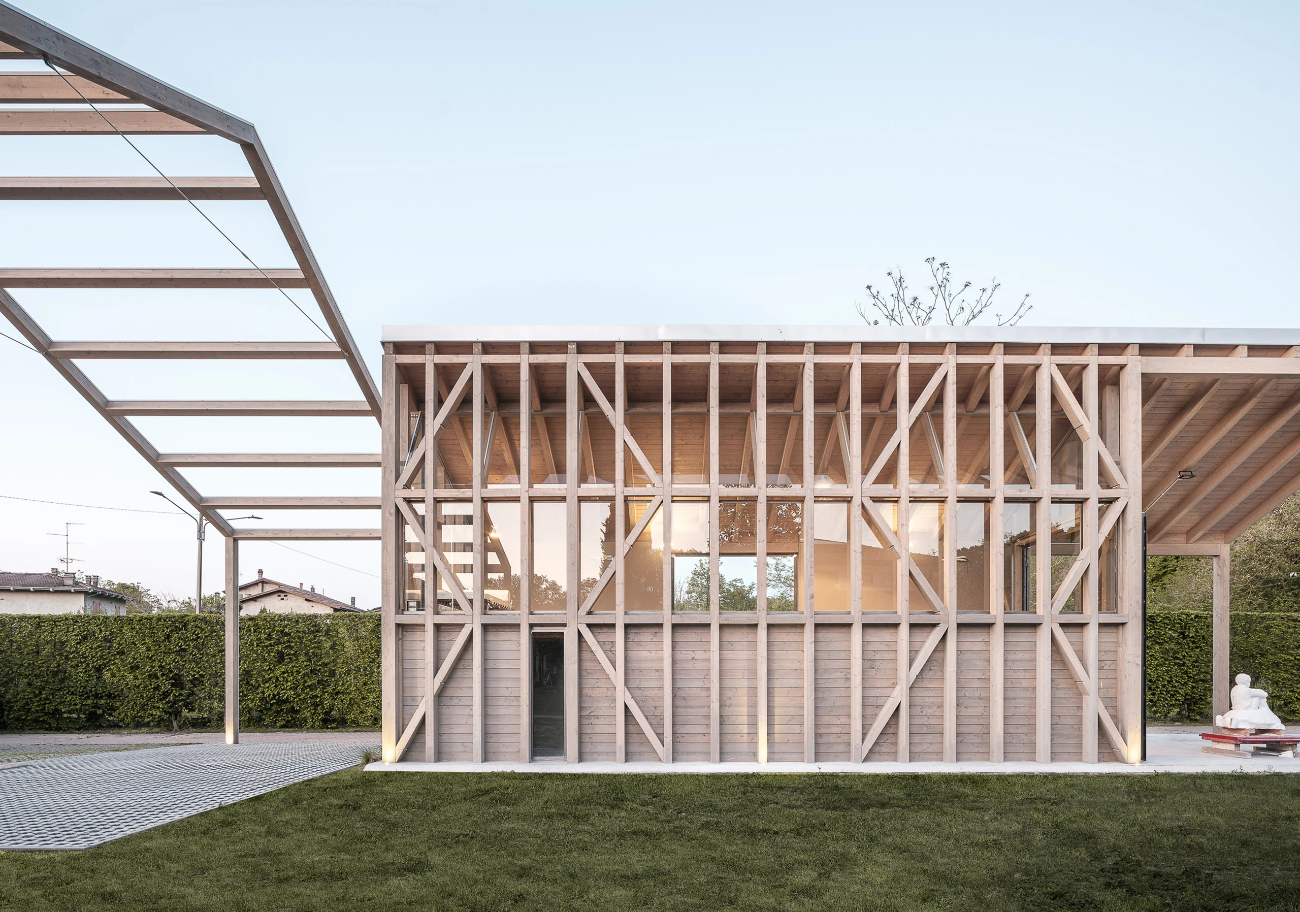 La firma italiana liderada por Christian Gasparini, Nat Office, ha sido la encargada de construir el estudio-taller del escultor Michelangelo Galliani, junto a su casa situada en la localidad de Montecchio Emilia, al norte de Italia. El volumen de madera se prolonga hasta el gran porche descubierto, generando áreas de trabajo al aire libre. La estructura, simplificada hasta sus límites, está basada en la reiteración de los elementos, que dotan de ritmo y fragmentan la gran nave de doble altura. La luz natural, controlada por un sistema de cortinas, modela e inunda el espacio interior.