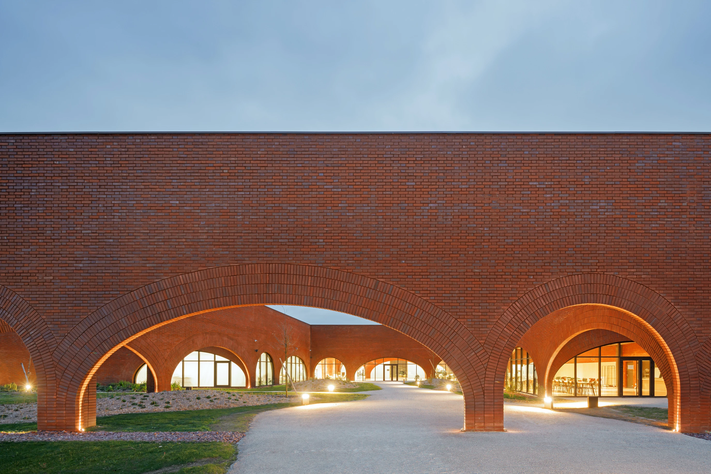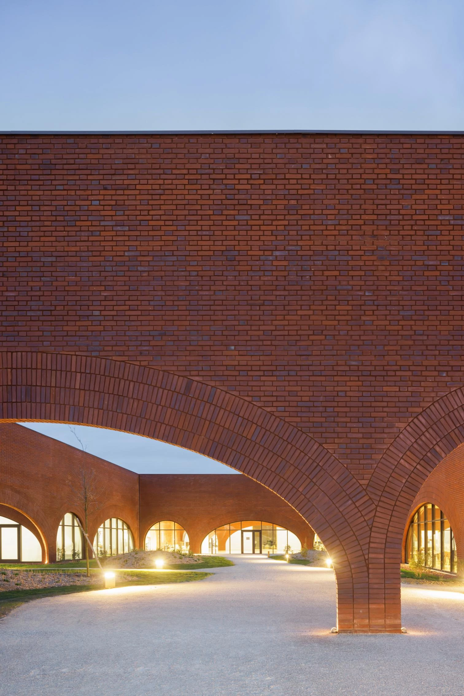 Estos talleres situados en la localidad normanda de Louviers acogen a 260 marroquineros y guarnicioneros para fabricar artesanalmente bolsos, pequeños artículos de piel, así como piezas ecuestres como sillas de montar y bridas para la marca de lujo Hermès. El proyecto de la arquitecta franco-libanesa Lina Ghotmeh está basado en su concepto denominado ‘la arqueología del futuro’, donde un edificio emerge en su entorno, teniendo en cuenta la memoria de su ubicación.