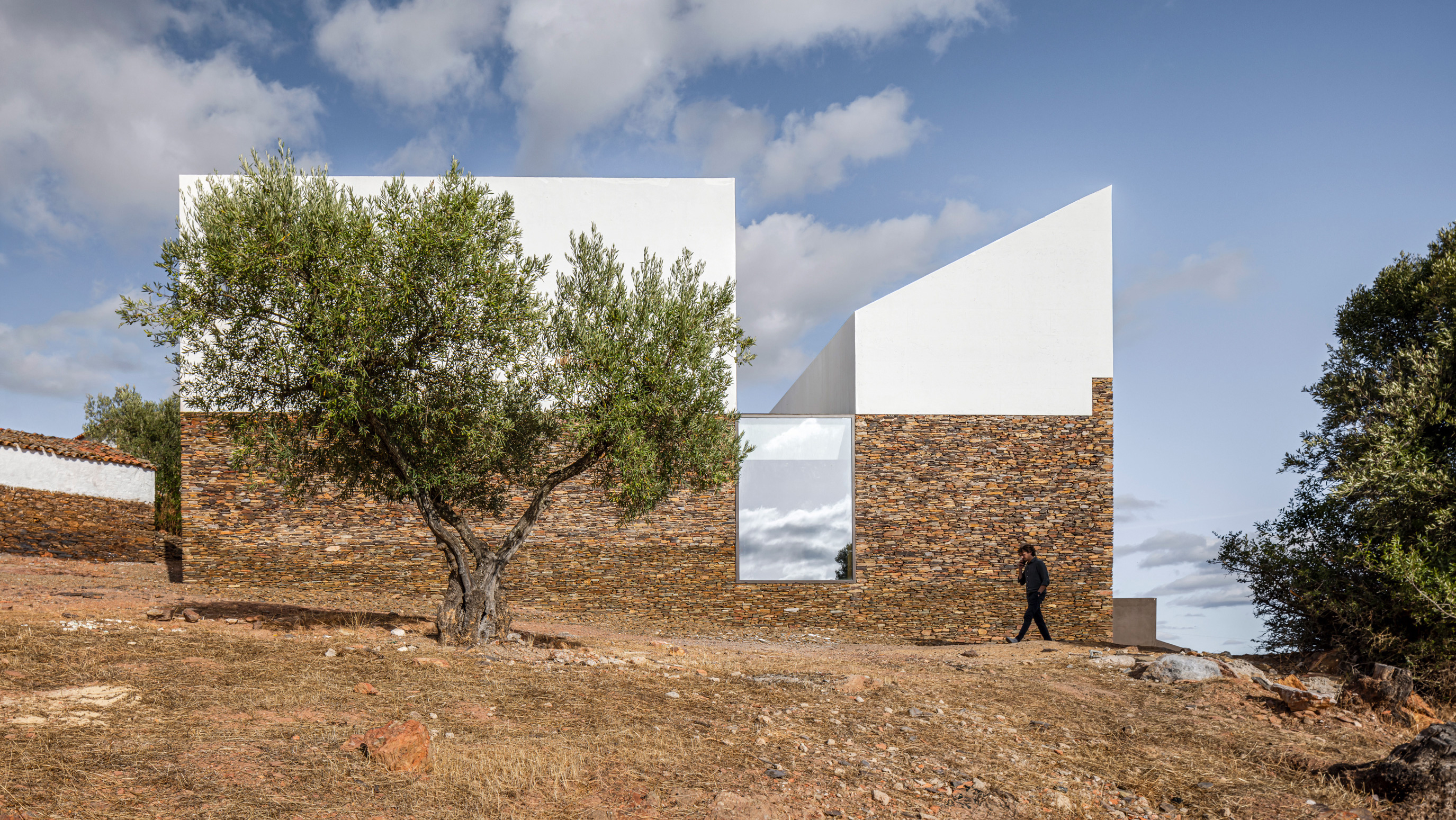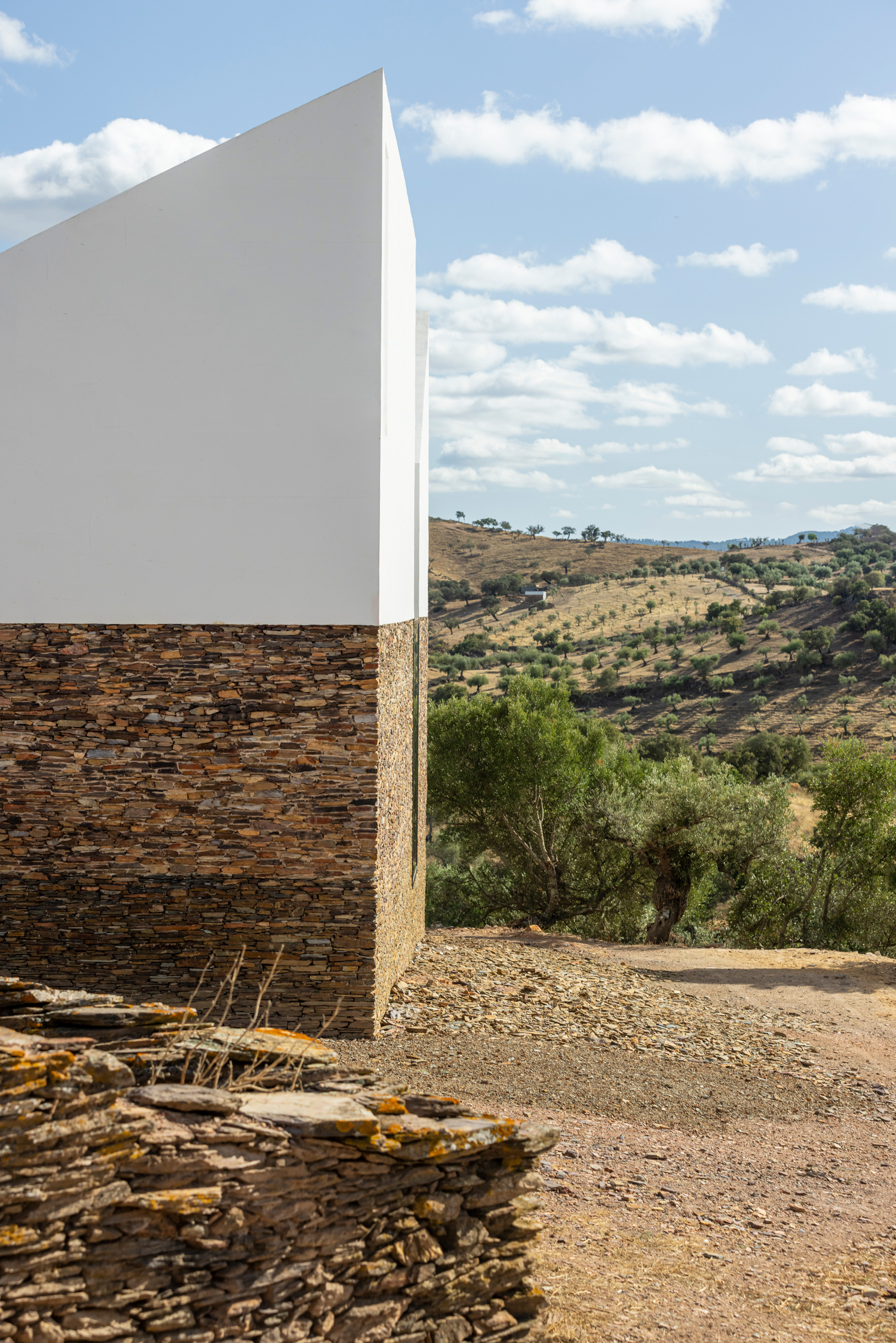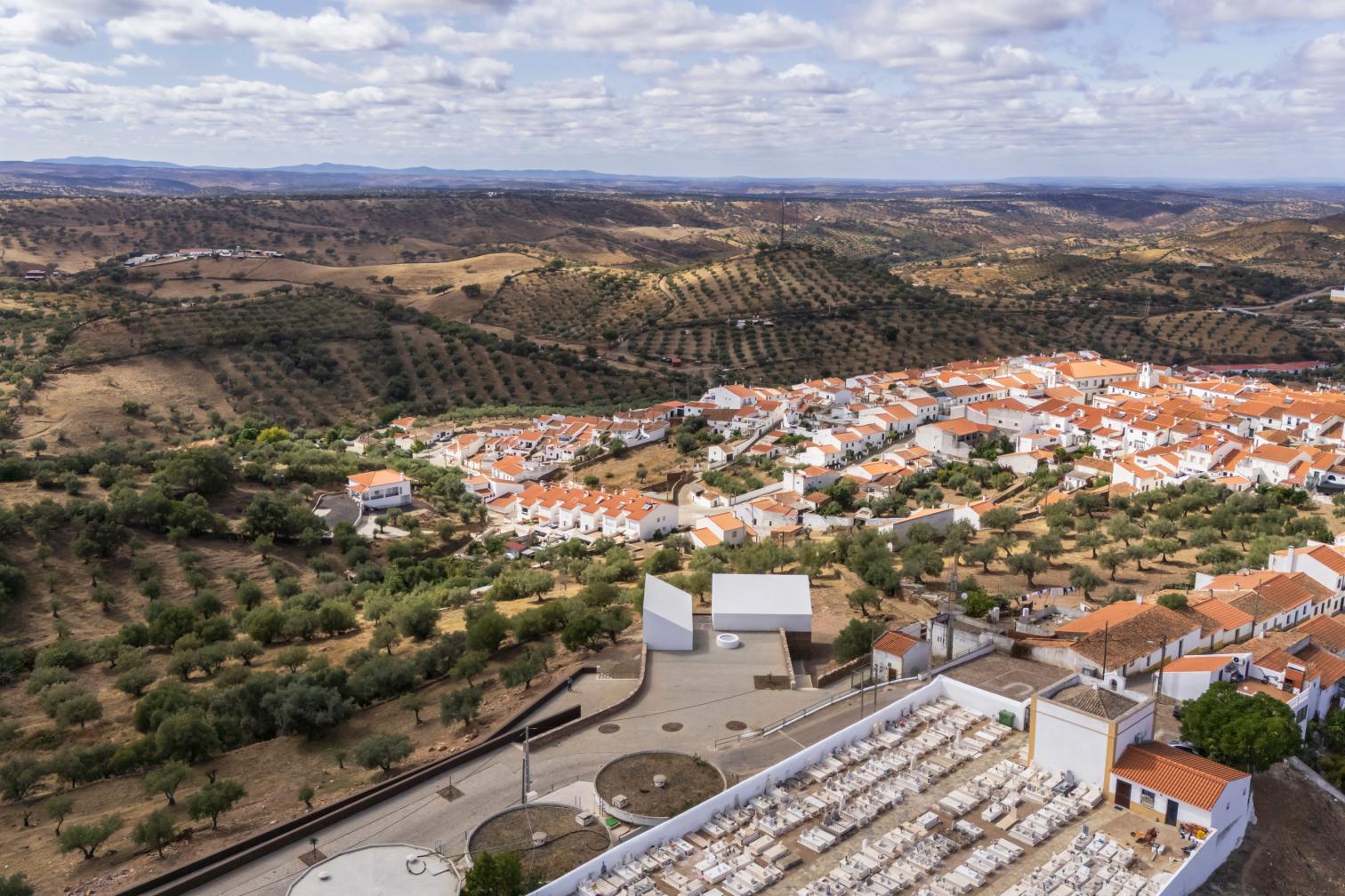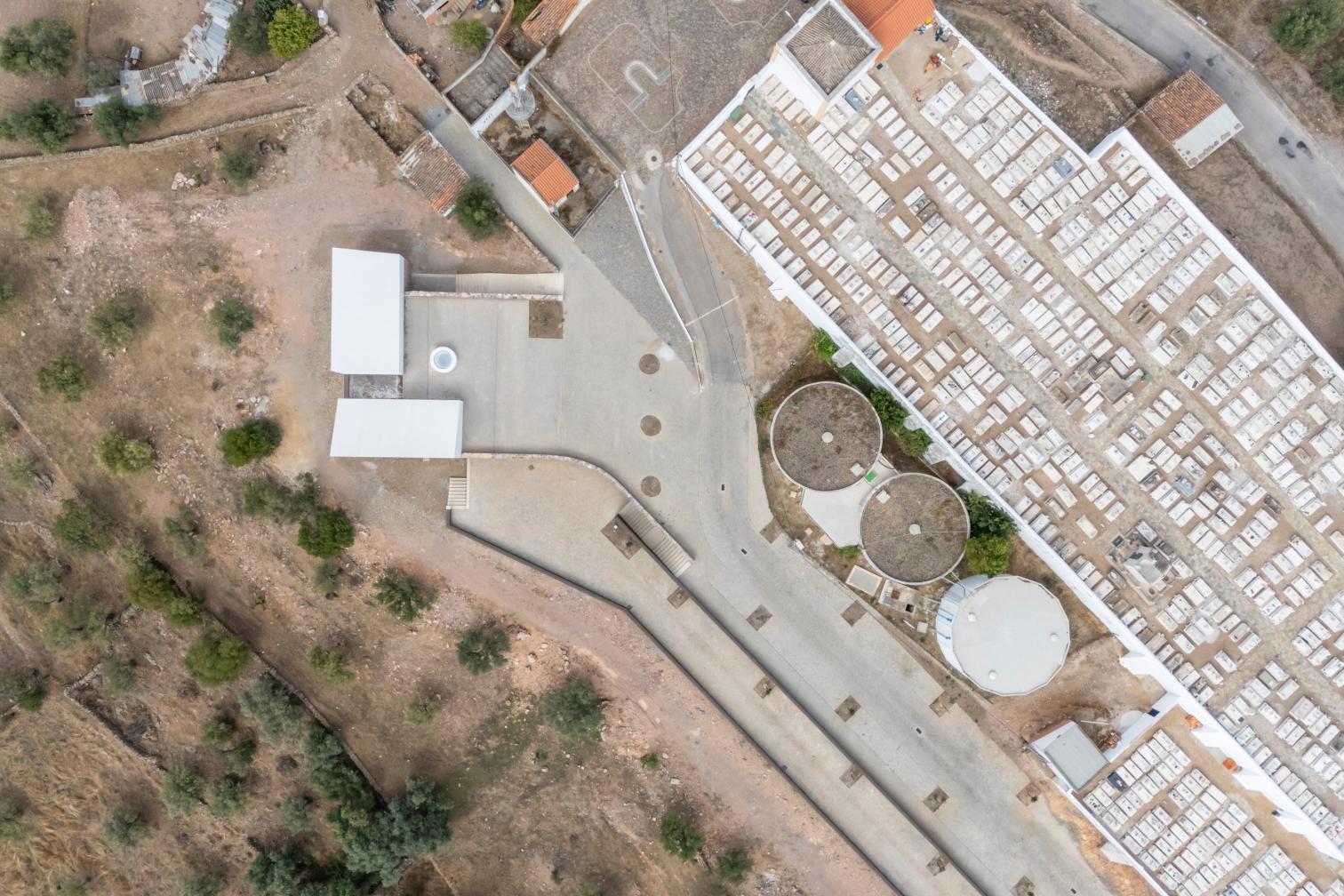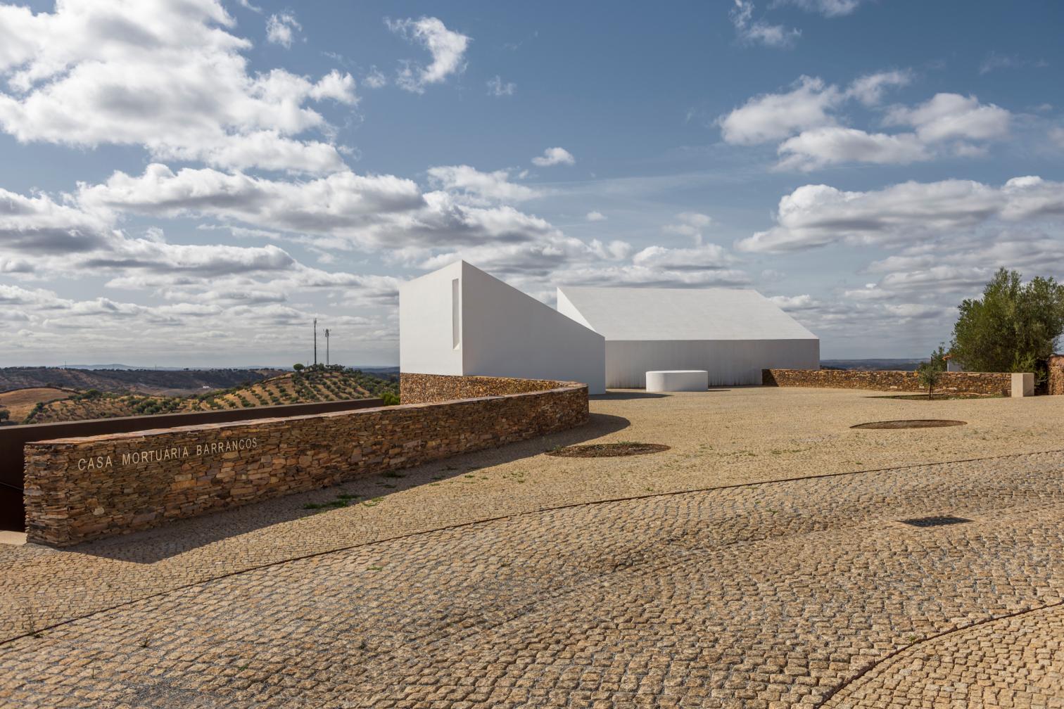 La Casa Mortuária del municipio de Barrancos se encuentra cerca de la frontera con España en la región portuguesa del Alentejo. El proyecto ‘Building with the Landscape’ resultó ganador de un concurso público en 2019 para construir estas capillas funerarias, desarrollado por el estudio lisboeta Mesa Atelier —Ana Isabel Santos, João Tavares, João Varela y Paulo Dias—. Inspirada en la arquitectura vernácula, la intervención recupera elementos tradicionales como los muros de piedra superpuesta con juntas secas, techos de madera y revestimientos de cal.