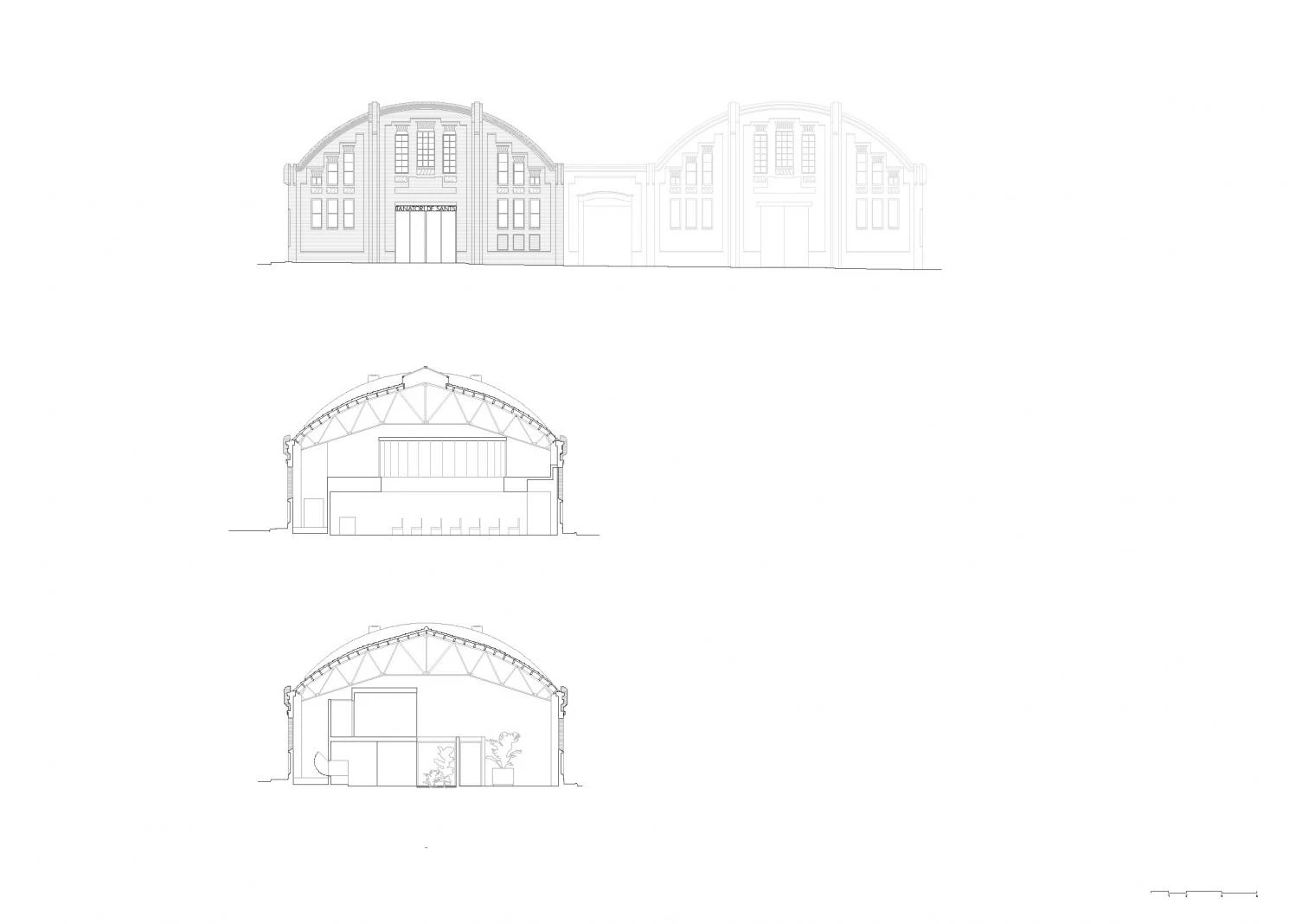 Pau Millet y Xavier Ramoneda del estudio Mirang han sido los encargados de transformar la antigua fábrica Germans Climent en el tanatorio del barrio barcelonés de Sants. El edificio histórico protegido fue construido por el arquitecto Modest Feu i Estrada el año 1925. Con 64 metros de longitud y 15,50 metros de anchura, el edificio rectangular es un ejemplo de arquitectura industrial construida en ladrillo, con una cubierta de cerchas metálicas y viguetas de madera.