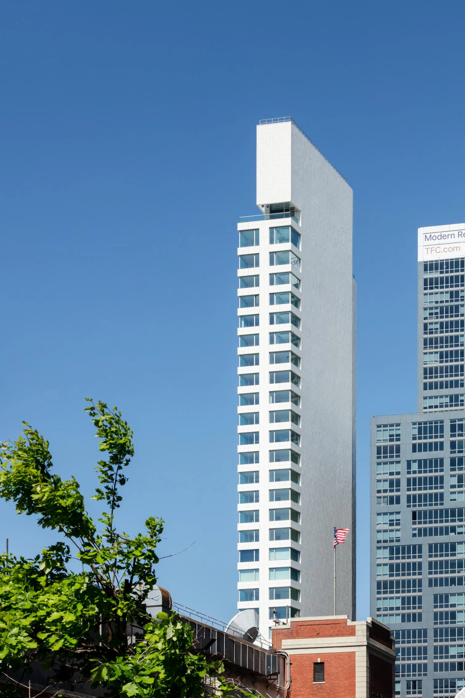 El arquitecto portugués Álvaro Siza ha finalizado el rascacielos residencial 611 West 56th Street en Manhattan, su primera obra construida en Estados Unidos. Revestida con piedra caliza en contraste con las construcciones del entorno, la esbelta torre de 137 metros de altura, con 77 viviendas de lujo, está ubicada en el Upper West Side, entre Riverside Park y Central Park, cerca del edificio triangular Via 57 West del estudio danés Bjarke Ingels Group (BIG). Desarrollada por las firmas inmobiliarias Sumaida + Khurana y LENY, la construcción emerge desde una base ancha y está coronada por un bloque sin ventanas de 16 metros. Los interiores de la torre fueron diseñados por el estudio neoyorquino Gabellini Sheppard Associates.