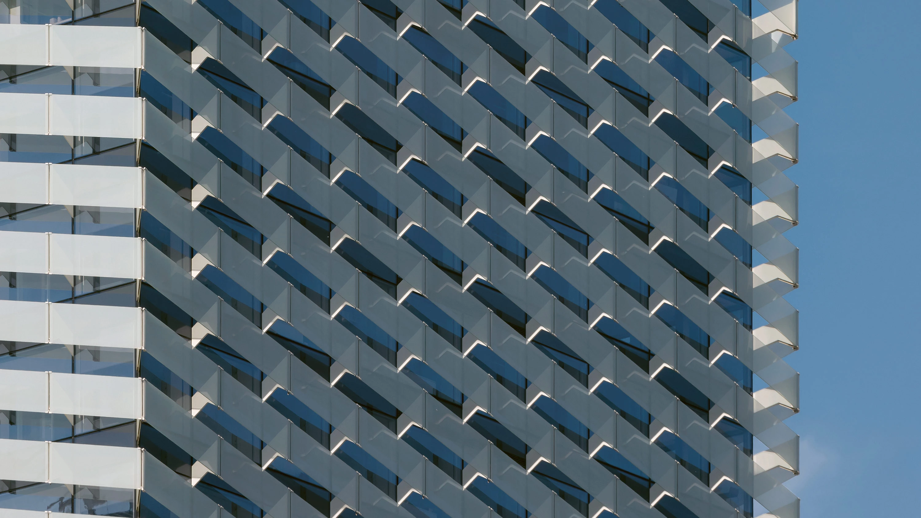 Con 109 metros de altura, la torre se organiza en planta en un cuadrado de 27,50 x 27,50 metros, cuyo centro ocupa el núcleo; la fachada está formada por una doble piel cuya hoja exterior se dibuja con bandas de vidrio en espiral.
