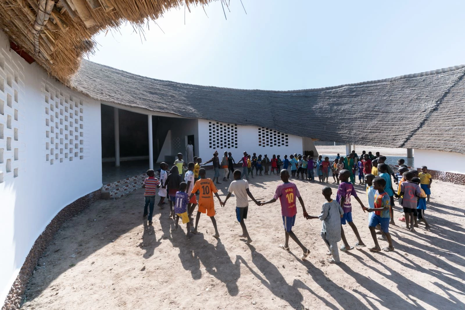 El estudio neoyorquino de la arquitecta Toshiko Mori recibió el encargo de la Fundación Josef y Anni Albers y la ONG American Friends of Le Korsa (AFLK) para levantar esta escuela de primaria en el remoto poblado senegalés de Fass. El conjunto contiene dos edificios de formas ovaladas. Con capacidad para acoger a 320 niños —de entre 5 y 10 años— de la región compuesta por 110 pueblos, el volumen de mayor tamaño incluye cuatro aulas y un espacio flexible cubierto distribuidos alrededor de un patio interior. El cuerpo más pequeño alberga alojamientos para los profesores. Utilizando técnicas constructivas y materiales locales, el proyecto cuenta con muros perimetrales de diferentes alturas que están perforados para permitir la ventilación. Además, la cubierta inclinada y gruesa de paja proporciona un aislamiento eficaz contra el calor.