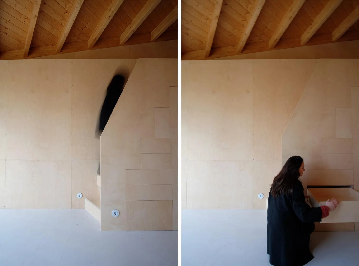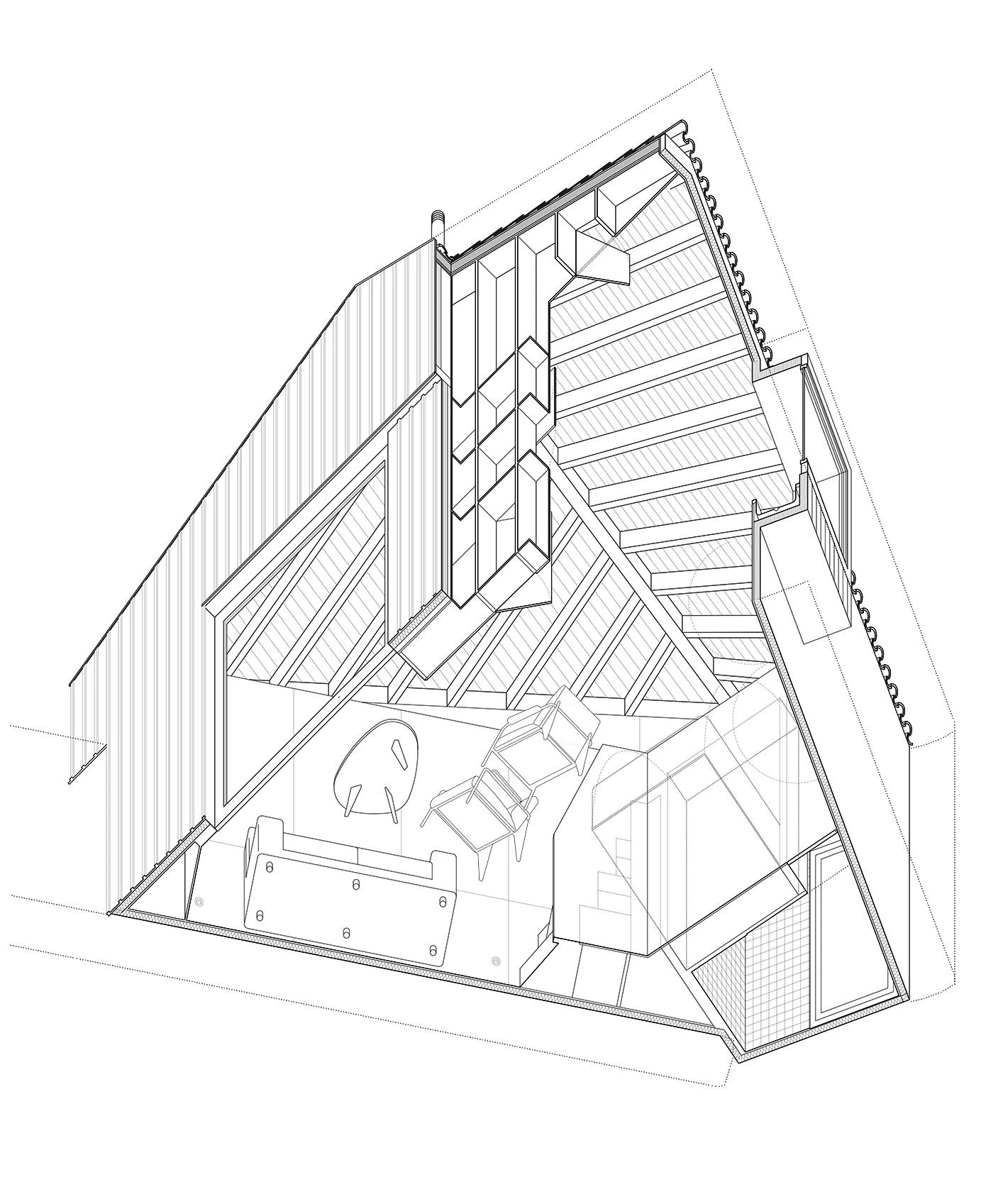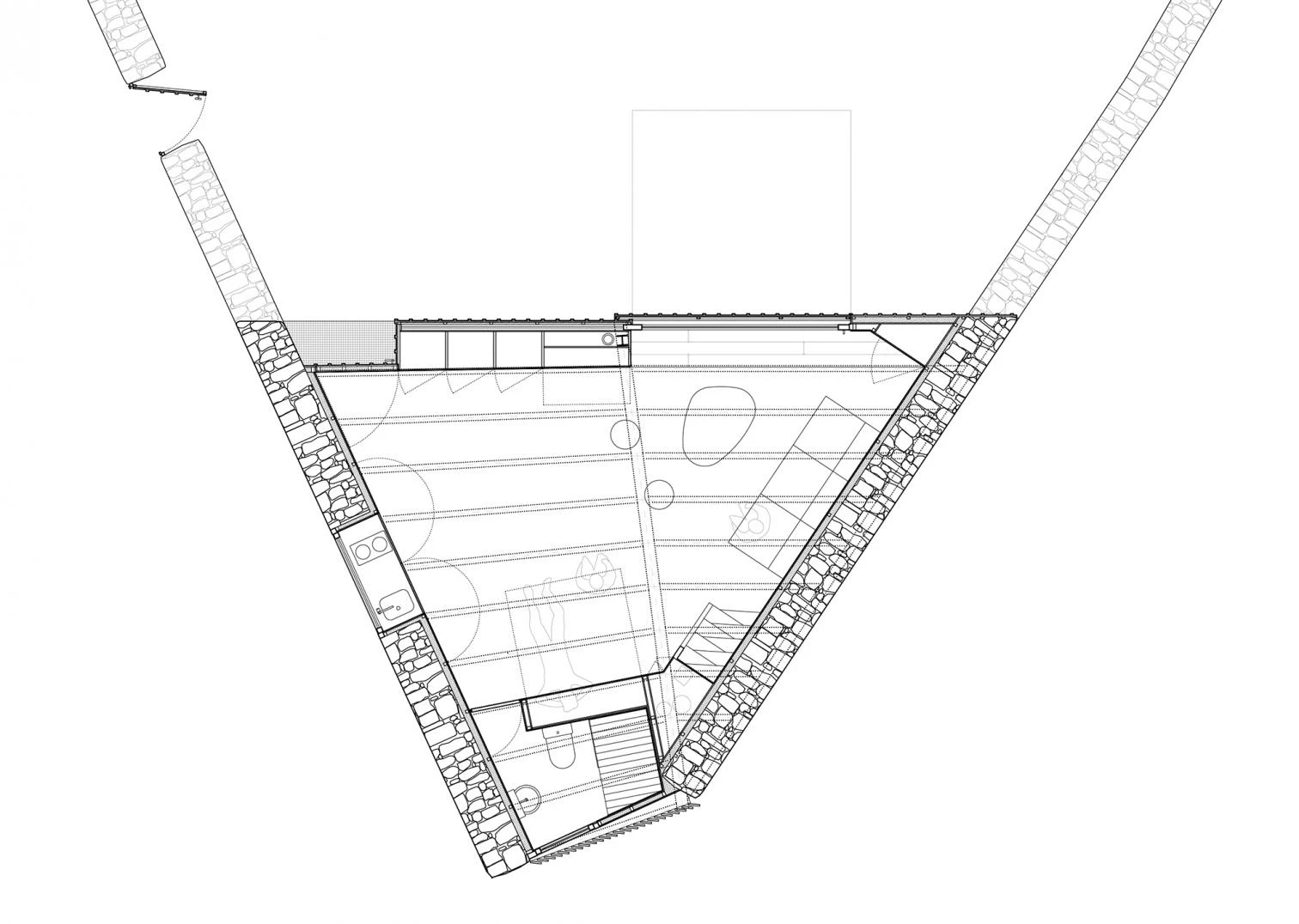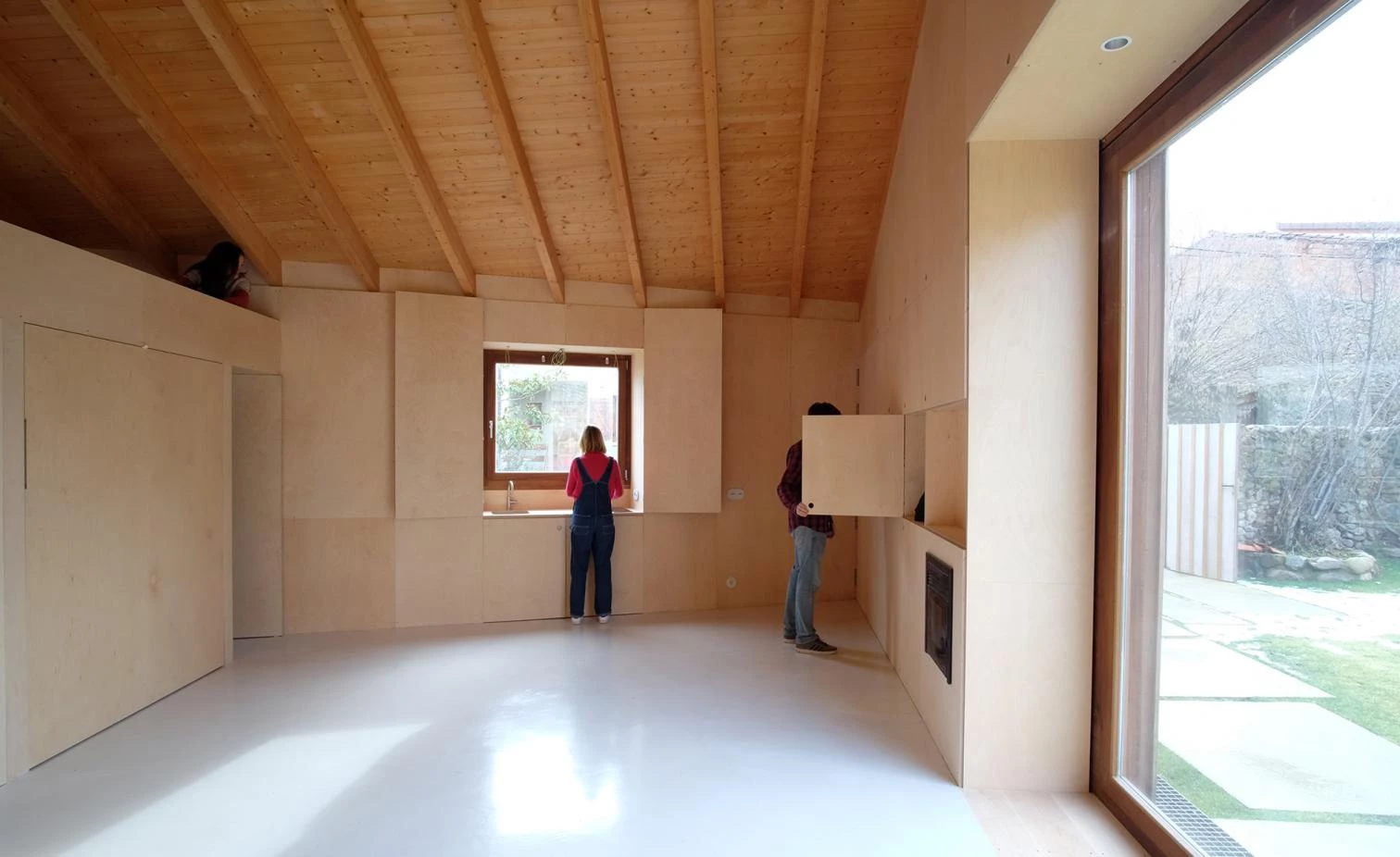 La firma MAAV, liderada por Guillermo Avanzini Alcibar (Bilbao, 1989) y Adrián Martínez Muñoz (Sevilla, 1989), ha sido la encargada de rehabilitar un almacén de aperos abandonado para convertirlo en una vivienda rural de Ojacastro. Con una superficie construida de 40 metros cuadrados y un presupuesto de ejecución material de 83.000 euros, la casa de madera está concebida como un mueble habitable que ocupa el hueco delimitado por los muros de piedra existentes. Un espacio único incorpora muebles plegables y una cama abatible, ocultando los elementos en las gruesas paredes como la cocina, los electrodomésticos o el espacio de almacenamiento. El entramado de madera de la cubierta, en muy mal estado, se sustituye por otro de madera laminada igualmente dispuesta en espina de pez.