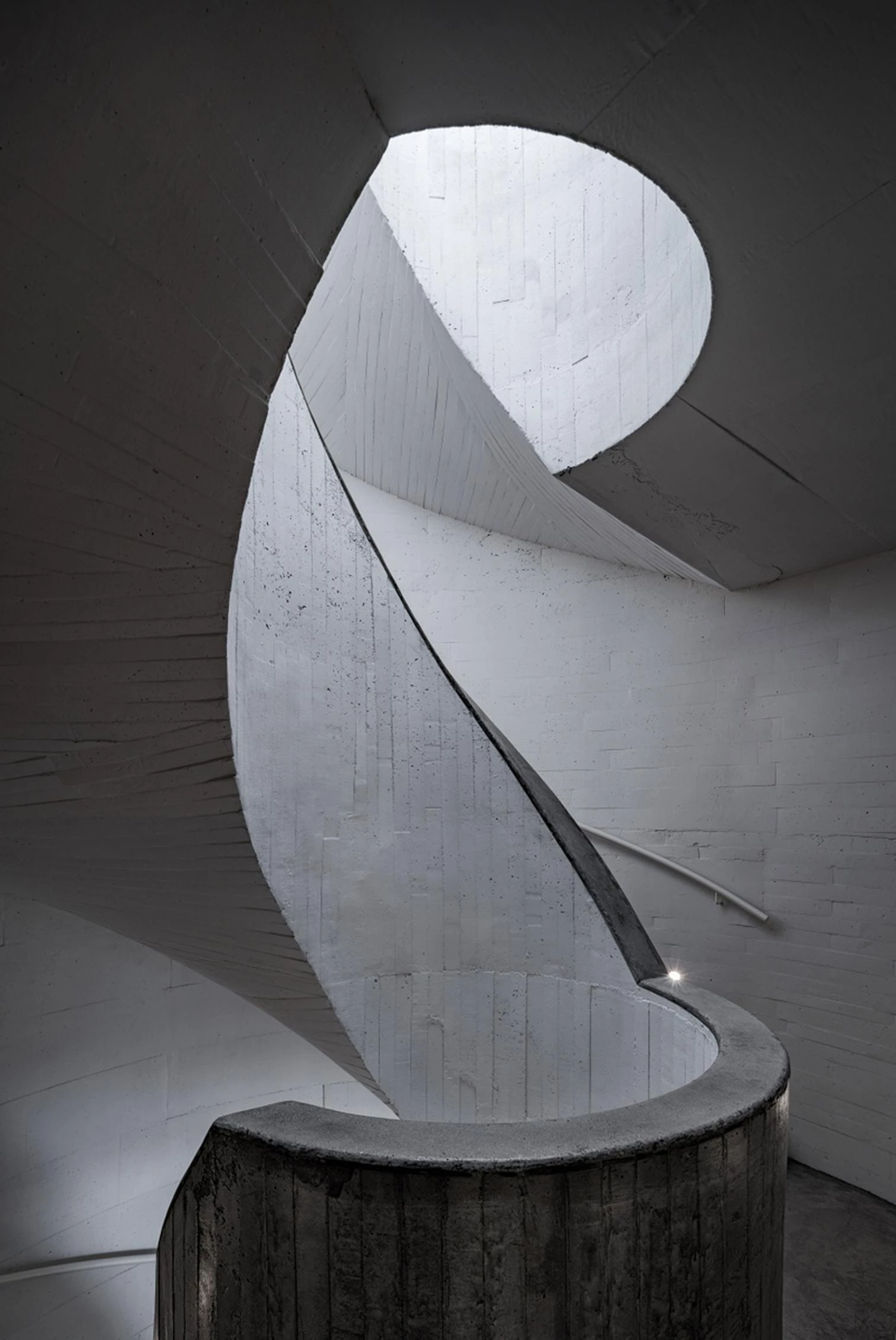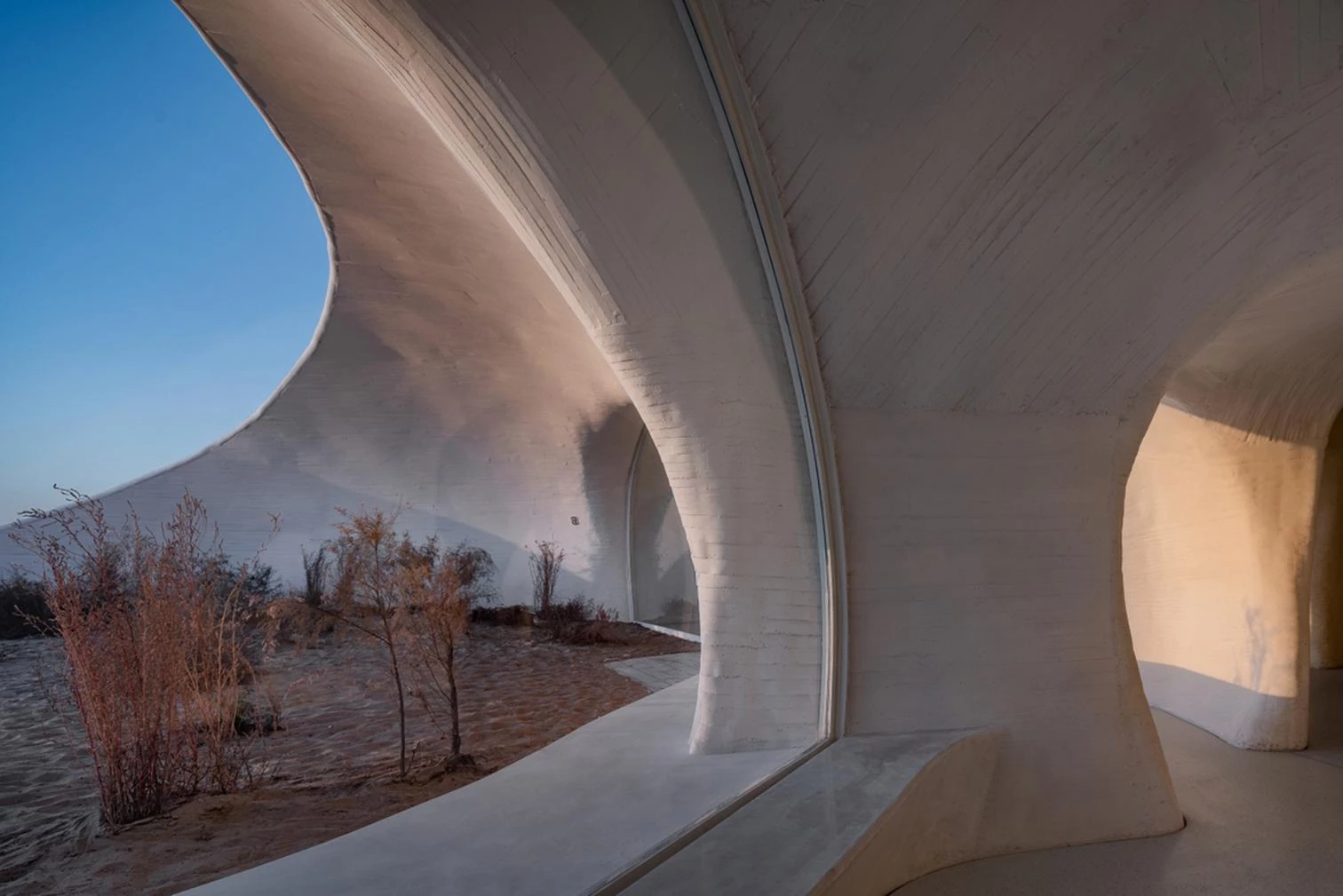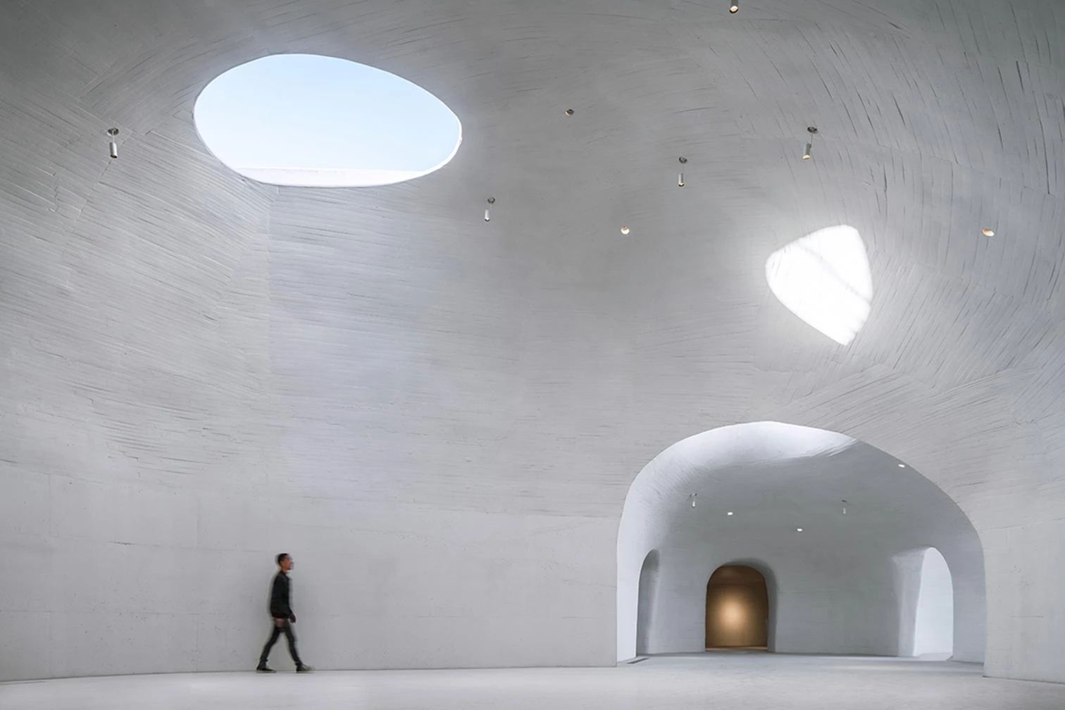 En la ciudad costera de Qinhuangdao, entre el mar y la arena, una serie de galerías subterráneas de hormigón dan forma a este museo para UCCA, una de las principales instituciones de arte independientes de China. Diseñado por la firma de Pekín Open Architecture, fundada por Li Hu y Huang Wenjing, el edificio se incrusta en una duna, diluyéndose así en el entorno natural. Con una cafetería, una sala de lectura, siete galerías interiores y tres al aire libre, la construcción de 930 metros cuadrados presenta espacios conectados, semejantes a cuevas, que exhiben la textura irregular del encofrado. Cuando el visitante entra en el museo atraviesa un largo túnel y el área de recepción abovedada para llegar a la galería multifuncional más grande, horadada por un gran tragaluz. Una escalera de caracol conduce a un mirador con vistas al mar de Bohai.