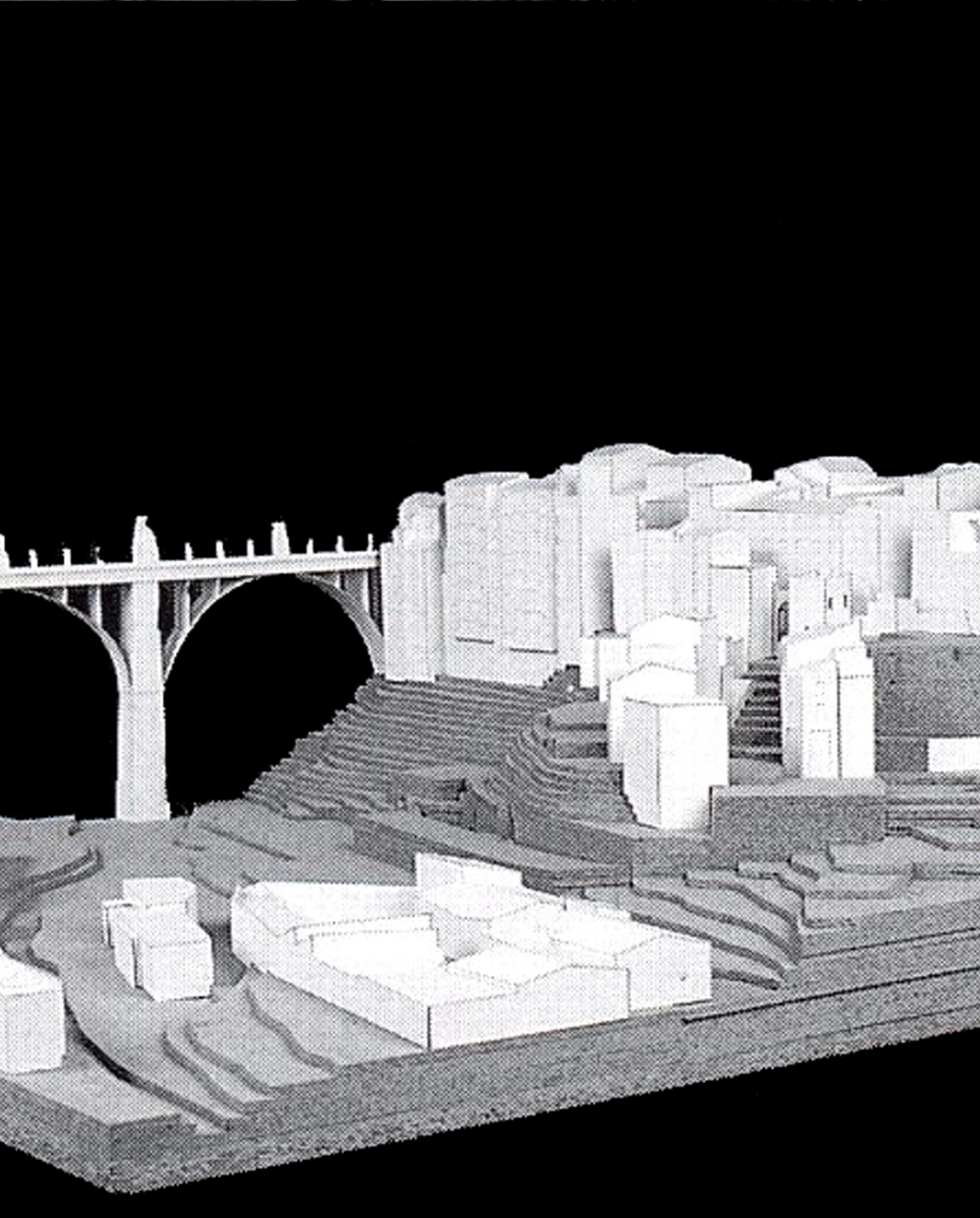 Además de esta aportación arquitectónica, el proyecto prevé una serie de actuaciones de tipo paisajista y urbano que permitan integrar este barrio con su entorno natural y con el resto de la ciudad. Para ello se han diseñado una serie de pavimentaciones y un paseo que, bordeando el barranco, constituirá un borde pétreo a partir del cual se desarrollará un ajardinamiento natural del terreno.