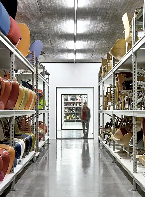 Almacenada bajo una nave industrial, la colección del Vitra Design Museum, una de las colecciones de mobiliario más importantes del mundo, ha permanecido oculta al público durante años. El Schaudepot tiene aspecto de almacén y cumple las funciones de depósito, pero además ahora se exponen en él más de 400 piezas clave de la historia del diseño de mobiliario moderno.