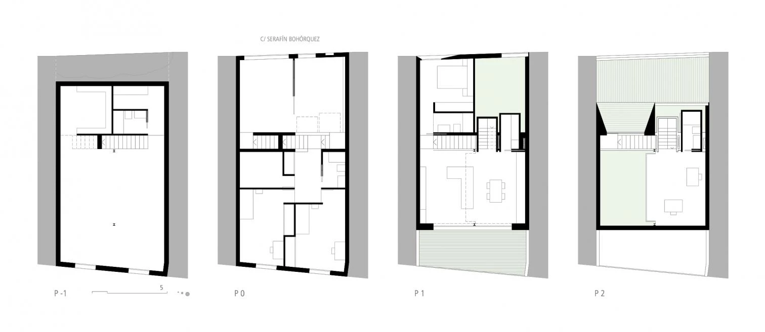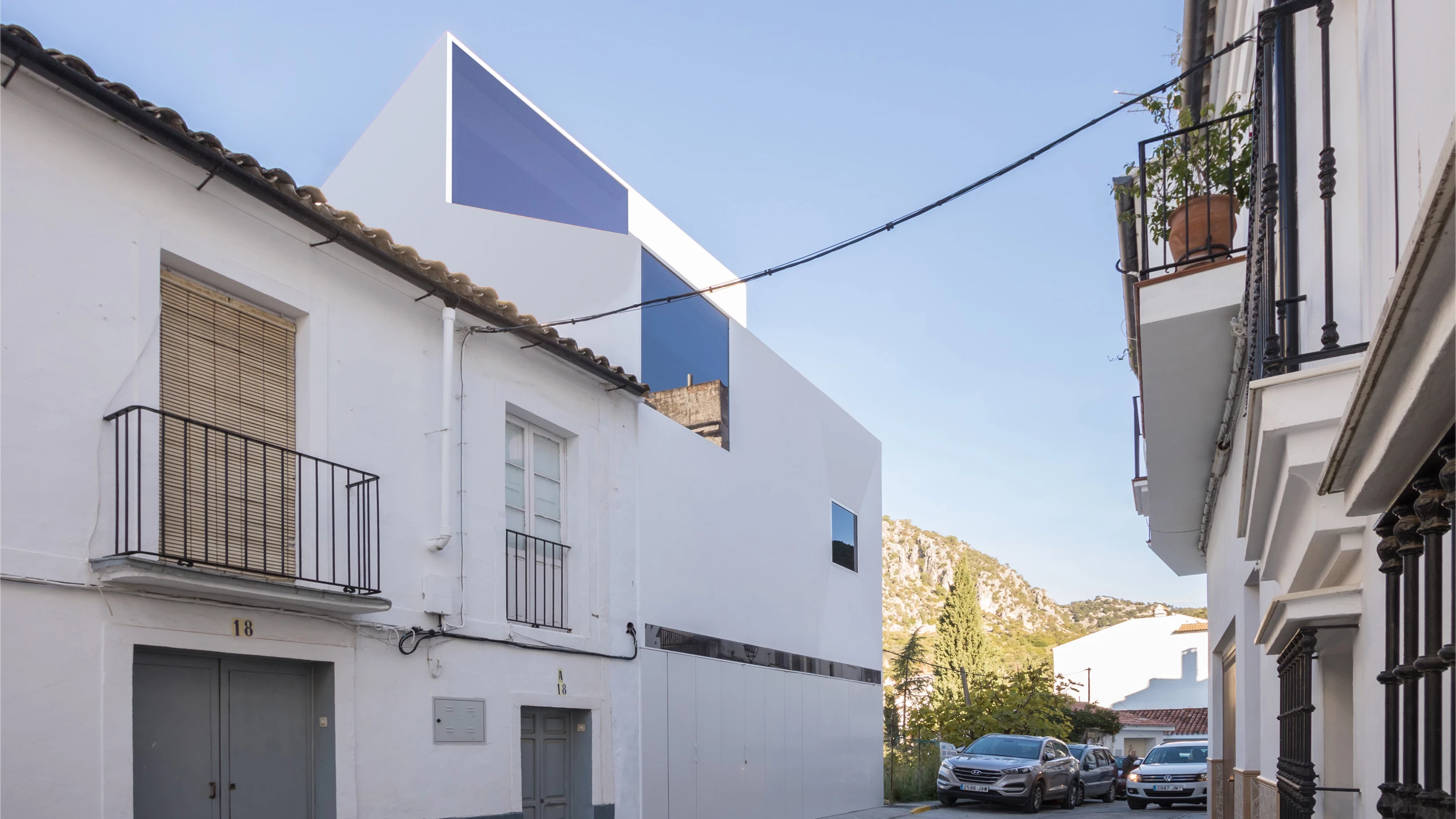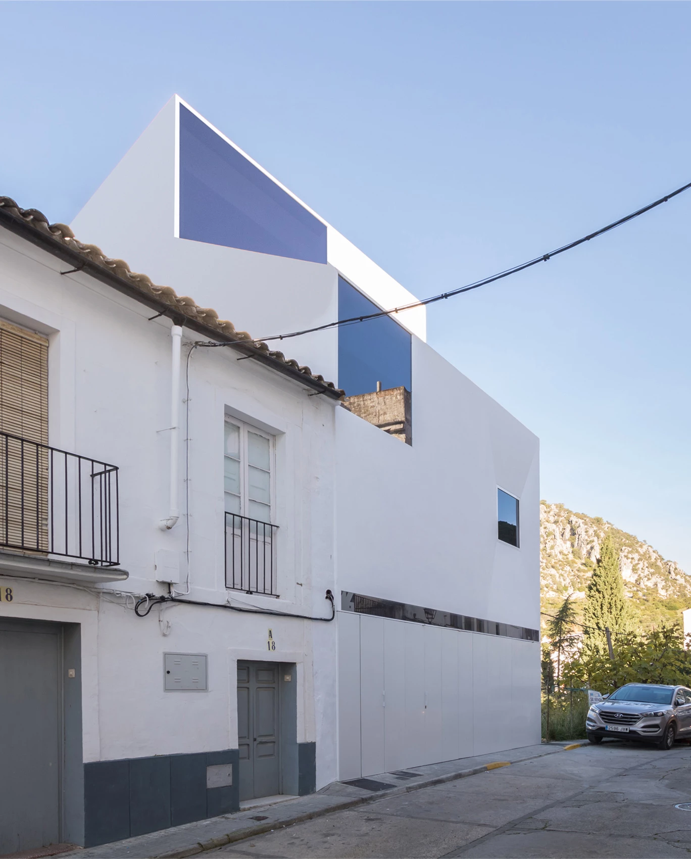 Con sus fachadas de color blanco y cubiertas inclinadas de tejas, el municipio de Ubrique forma parte de la ruta turística de los pueblos blancos ubicados en las provincias de Cádiz y Málaga. Obra del estudio gaditano Carquero arquitectura —liderado por Carlos Quevedo Rojas— con Carlos Peinado, junto a Miguel Rodríguez Muñoz y Donatella La Riccia, la casa se levanta entre medianeras en el número 16 de la calle Doctor Serafín Bohórquez. Con una superficie construida de 331,65 metros cuadrados, la vivienda está condicionada por la inclinación del terreno dado el desarrollo en abruptas pendientes del municipio atravesado por el Arroyo Seco.