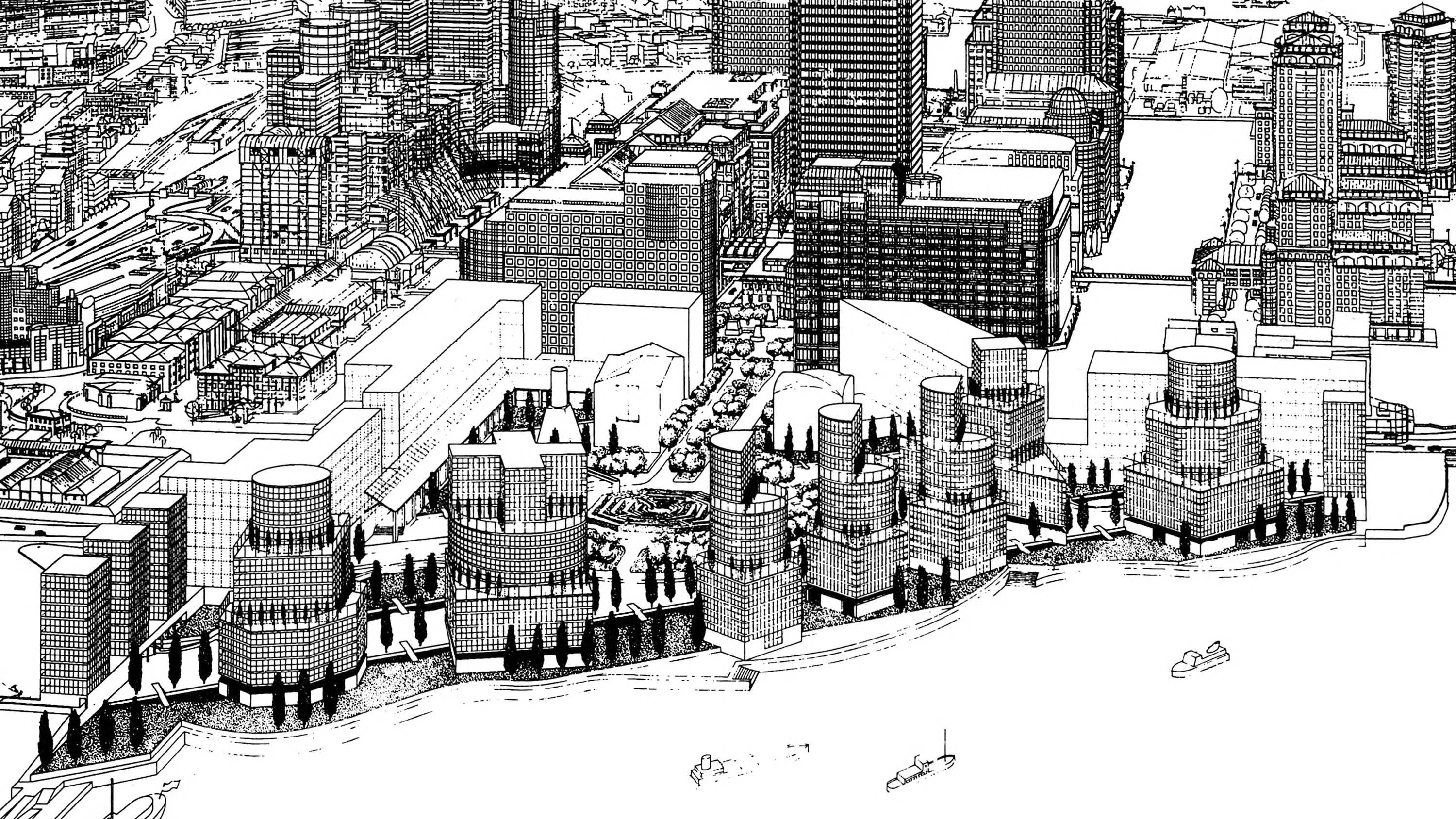 La remodelación de las instalaciones portuarias londinenses, planteada durante la etapa de euforia económica de los ochenta, es una muestra paradigmática de la política urbana de Margaret Thatcher, basada en la iniciativa privada y la desregulación. La promoción residencial y terciaria en Canary Wharf, dentro de la cual se inscribe este proyecto, fue la operación estrella de esta política, a cuyo estrepitoso fracaso financiero y urbanístico asistimos hoy en día. Este es un factor a tener en cuenta a la hora de juzgar un proyecto cuyo programa adolecía de desmesura en cuanto a índices de ocupación residencial y terciaria.