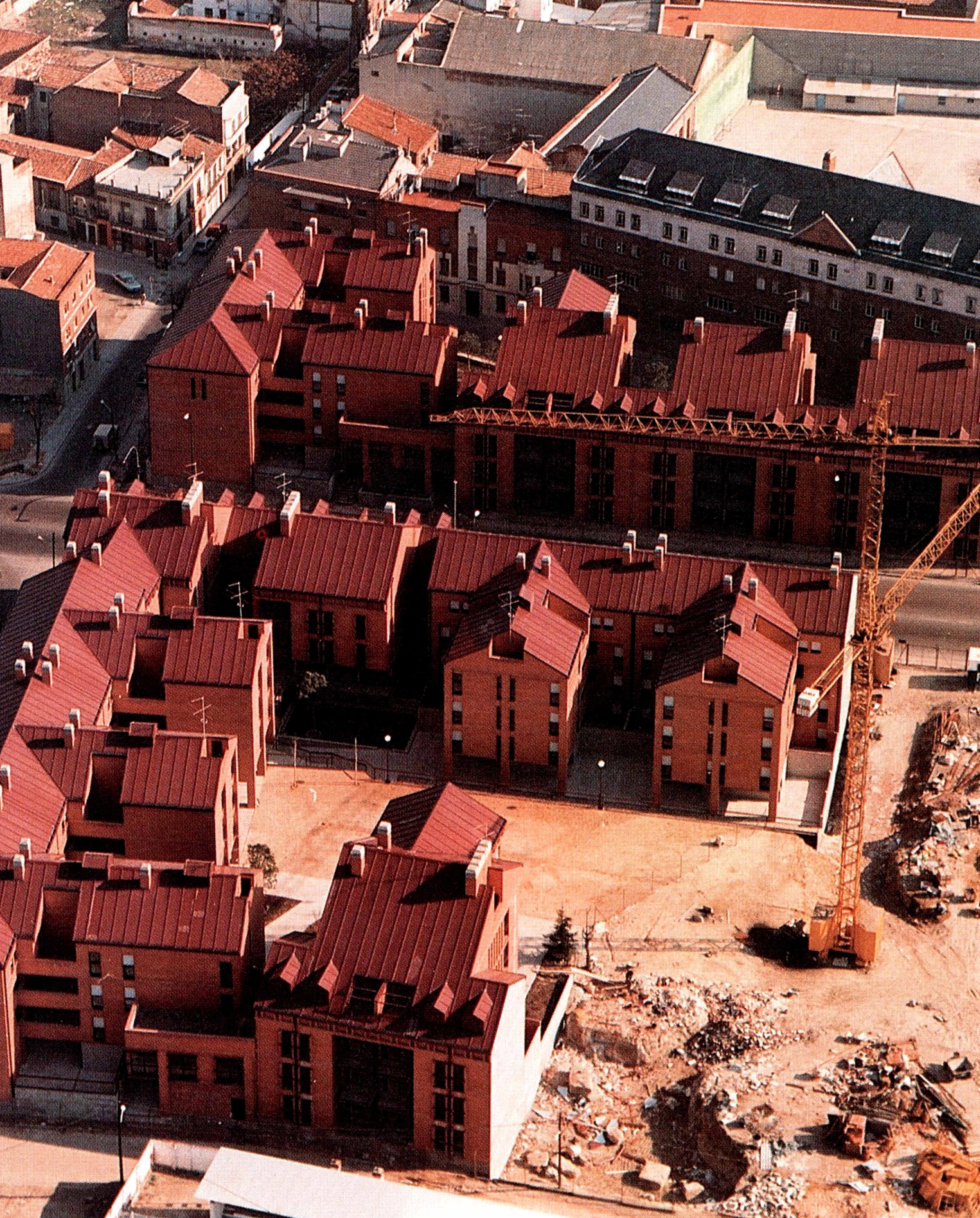 José Luis Íñiguez de Onzoño Antonio Vázquez de CastroEsta obra forma parte de la serie de encargos que Eduardo Mangada, al comienzo de sus funciones como Concejal de Urbanismo del Ayuntamiento de Madrid, hizo a los llamados «arquitectos de los poblados madrileños». Casi treinta años separan este proyecto del Poblado de Caño Roto, durante los cuales la demanda de vivienda pública ha variado sustancialmente, desde unos estándares muy precarios de superficie, calidad y servicios urbanos de todo tipo hasta alcanzar hoy unos niveles presupuestarios que incluso actualizando la moneda, permiten plantearse otros temas y resolver otros problemas, como el de la coherencia de la imagen urbana con las preexistencias del lugar.