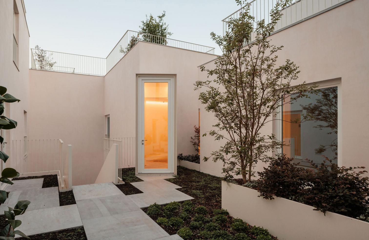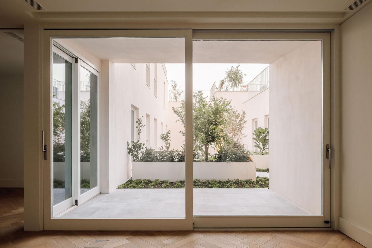 La intervención implicó una inversión en la volumetría del conjunto residencial: mientras que hacia el norte se amplió el volumen construido, hacia el sur se demolieron ciertas secciones para reducir su impacto visual. De este modo, el proyecto asegura una integración armónica y una continuidad morfológica dentro del tejido urbano.