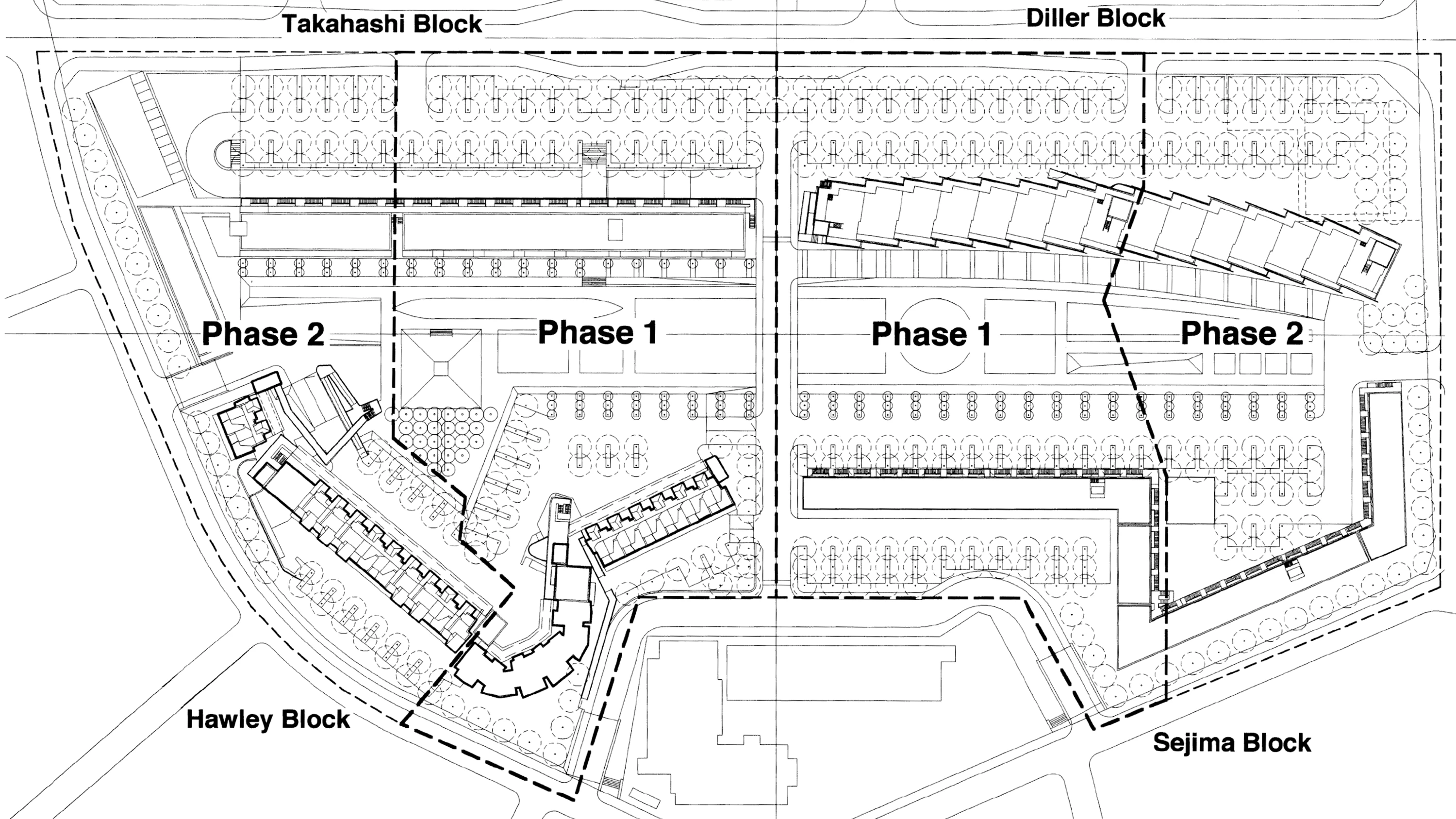 Arata Isozaki (plan director y coordinación), Kazuyo Sejima, Akiko Takahashi, Elizabeth Diller, Christine Hawley (con A. Ashton, A. Porter y S. Sekkei).