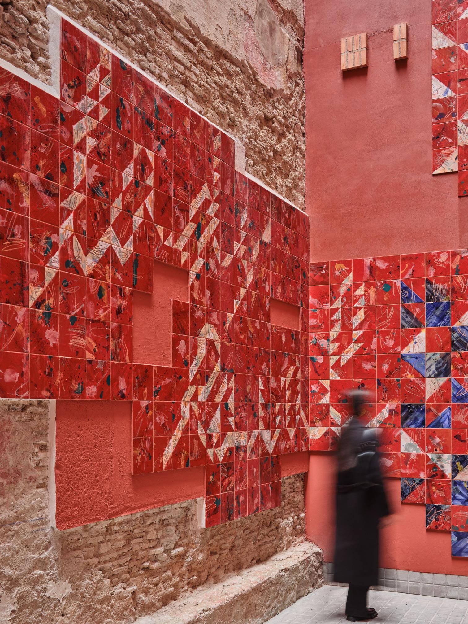 El patio central emerge como el núcleo simbólico de la intervención. Un espacio común exterior, renovado, abierto y luminoso, al que se orientan todas las viviendas sociales. El patio refleja la diversidad de los lugares de origen de los vecinos que regresan al edificio tras su rehabilitación. Las piezas cerámicas diseñadas por Carlos Jiménez Cenamor —arquitecto y ceramista (DelAmorYlaBelleza) —, evocan motivos textiles, patrones y colores provenientes de distintas culturas. Así, el patio se transforma en un lienzo que narra historias de vida y pertenencia de su comunidad.