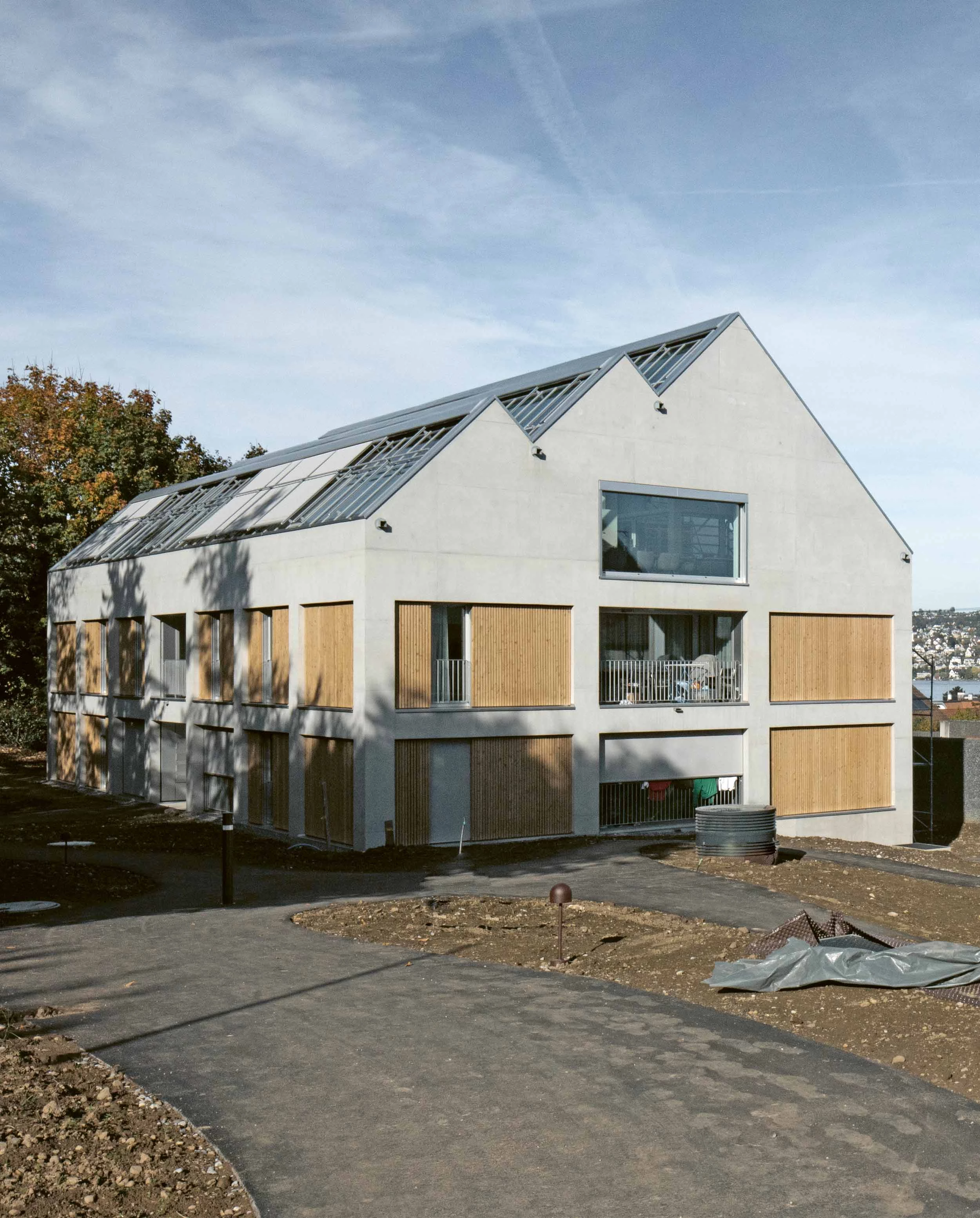 En los últimos años, debido al avance de la tecnología, la relación entre los espacios residenciales y de trabajo ha cambiado sustancialmente: cada vez más, las personas trabajan donde viven y viven donde trabajan. Esta transformación, donde los límites son más difusos, fue el punto de partida de este proyecto en una ladera junto a las vías de tren que unen Zúrich y Chur. El objetivo fundamental de la propuesta consistía en proporcionar algo más que un espacio habitable para unidades familiares tradicionales. Además de los tipos habituales de apartamentos, los dos edificios que forman el conjunto albergan viviendas-taller dispuestas en la última planta. Mientras que las plantas bajas se relacionan con la topografía, los niveles superiores persiguen una tipología capaz de satisfacer los requisitos de vida contemporáneos. A nivel formal, ambos volúmenes comparten un lenguaje común: una composición tripartita clásica (base, cuerpo intermedio y coronación) culminada con una cubierta inclinada para cumplir con la normativa local, y que, al mismo tiempo, evoca el techo de un cobertizo clásico o de los estudios de la primera modernidad. Además de por las cubiertas dentadas, la imagen exterior está definida por una precisa cuadrícula de llenos y vacíos, de hormigón y vidrio o celosía de madera, respectivamente...[+]