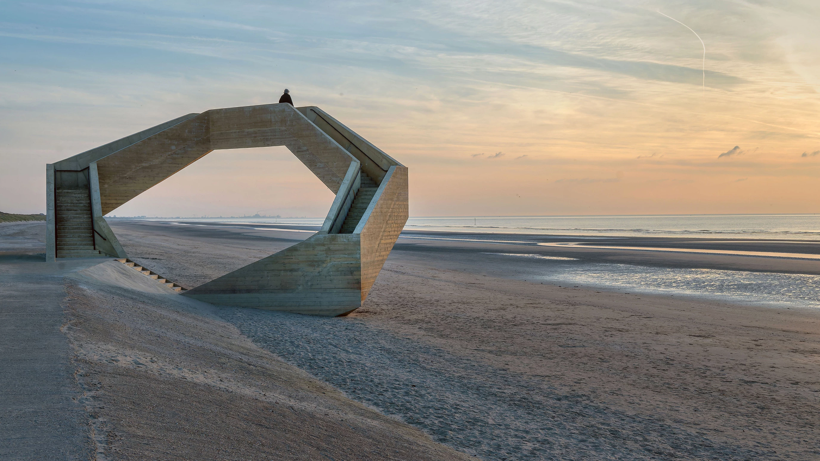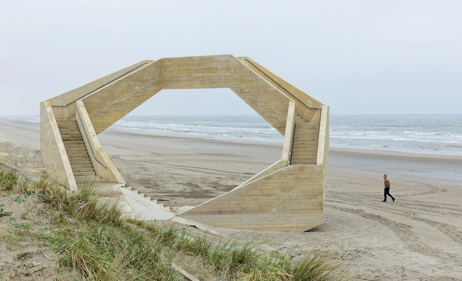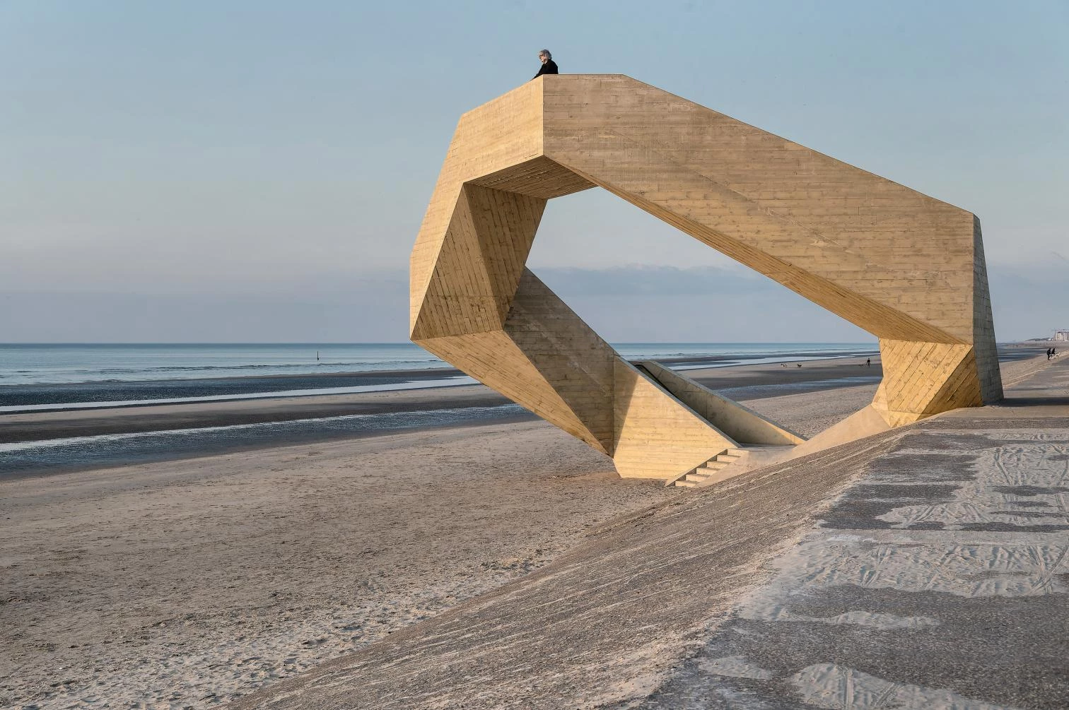 La firma belga Studio Moto ha levantado este mirador en una playa de De Panne, junto al paseo existente que conecta el municipio belga con Dunkerque (Francia), junto al mar del Norte. La forma en anillo, denominada Westerpunt, ofrece un recorrido dinámico que simboliza la conexión entre los humanos y la naturaleza, y entre los dos países. La escala, el color y la textura de Westerpunt hacen referencia a las dunas de arena de la cercana reserva natural de Westhoek.