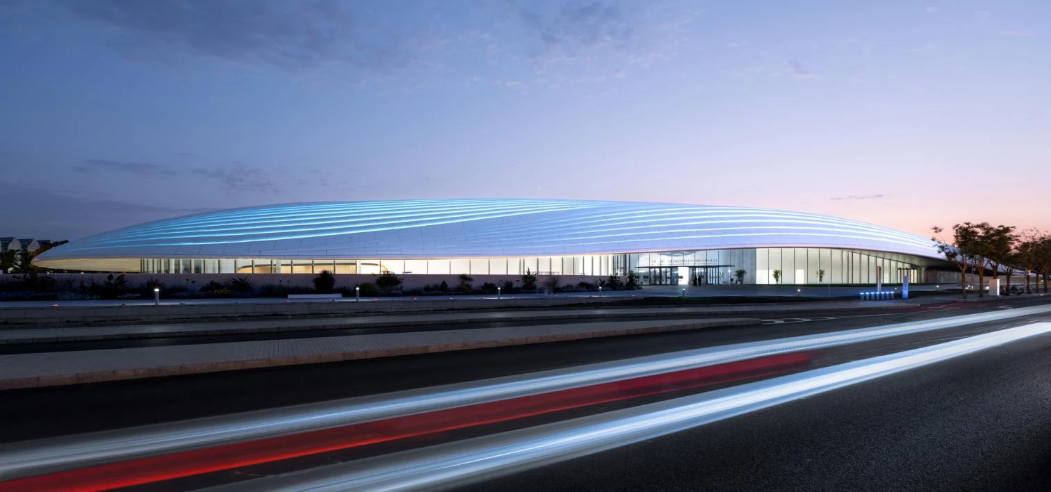 Con forma similar a un trébol, el edificio escultural presenta una cubierta vegetal accesible en voladizo de 17.000 metros cuadrados. Está compuesta por 2.769 paneles de aluminio de doble curvatura, dispuestos en patrones de densidad variable, que facilitan la recogida de las aguas pluviales. Con una superficie total de aproximadamente 65.000 metros cuadrados, el proyecto respeta un límite de altura de 12 metros, y se extiende suavemente de norte a sur, integrándose en el entorno.
