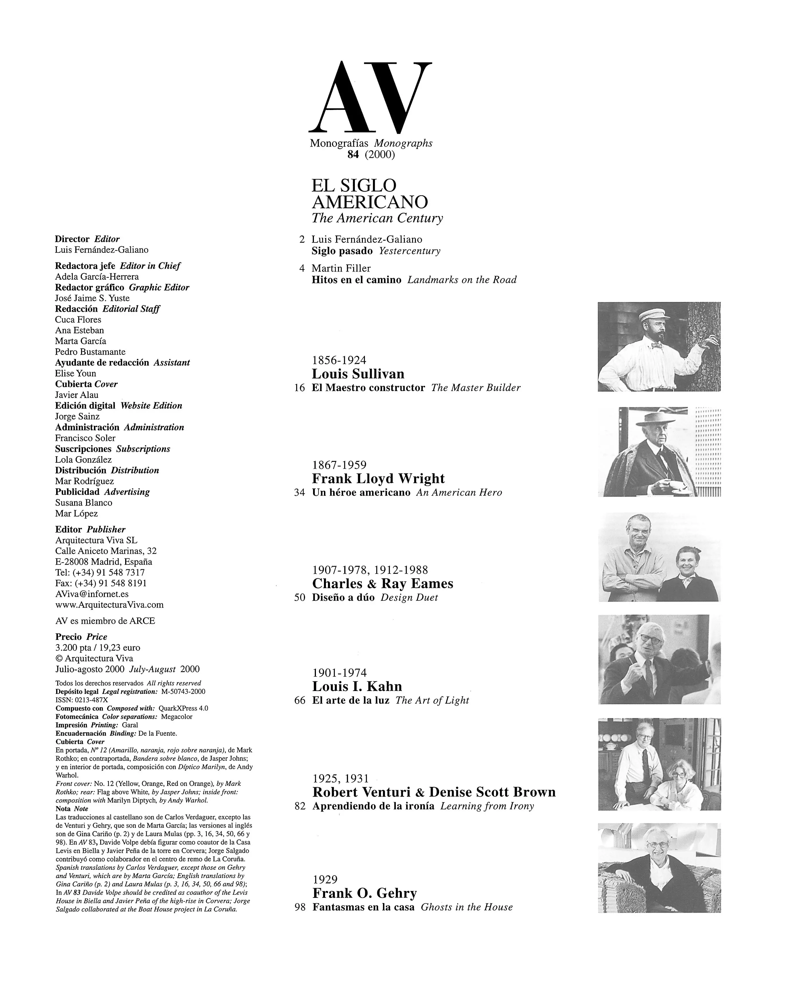 El siglo xx es ya el siglo pasado. Con ese título apareció en 1901 una recopilación de artículos de Leopoldo Alas, ‘Clarín’, y bajo esta rúbrica presentamos aquí un conjunto de textos del crítico e historiador neoyorquino Martin Filler, que resumen el que ha sido el siglo de América a través de seis de sus arquitectos. La variedad multifacetada de un periodo que ha cosechado a su término balances agridulces se apocopa reduciéndose a un solo país, y éste a su vez se representa taquigráficamente a través de las seis caras de un exaedro biográfico. Un poco a la manera del recientemente desaparecido Saul Steinberg, un rumano genial que eligió los Estados Unidos como residencia y como tema, la realidad laberíntica del siglo se abrevia con la elegancia clara de una línea que dibuja las aristas de un cubo, y en ese dado necesario y azaroso se comprimen las tormentas y esperanzas de un tiempo limpiamente seccionado por los planos de seis trayectorias singulares.