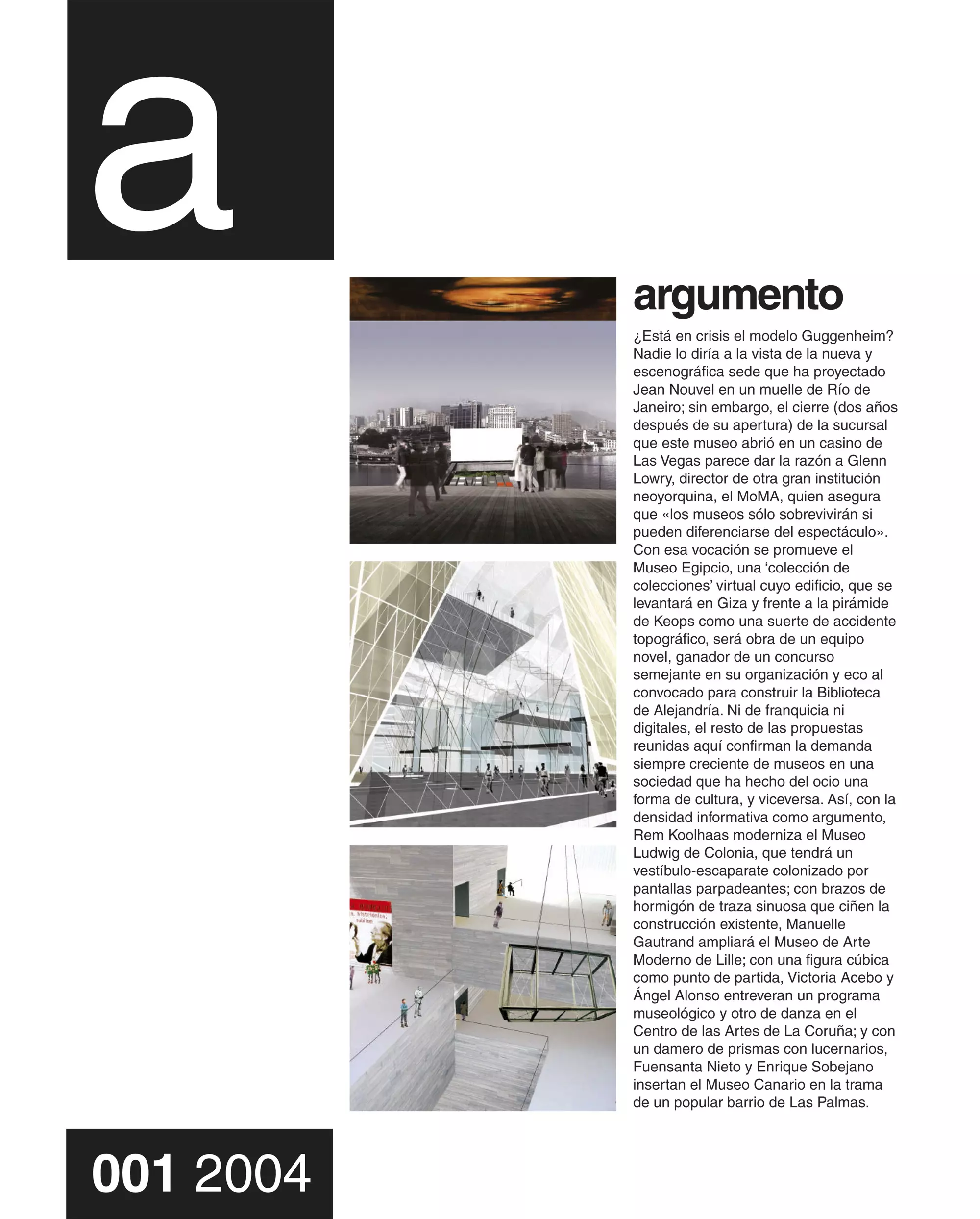 Proyecto: Museo Guggenheim, Río de Janeiro / Gran Museo Egipcio, El Cairo / Museo Ludwig, Colonia / Museo de Arte Moderno, Lille / Centro de las Artes, La Coruña / Museo Canario, Las Palmas
