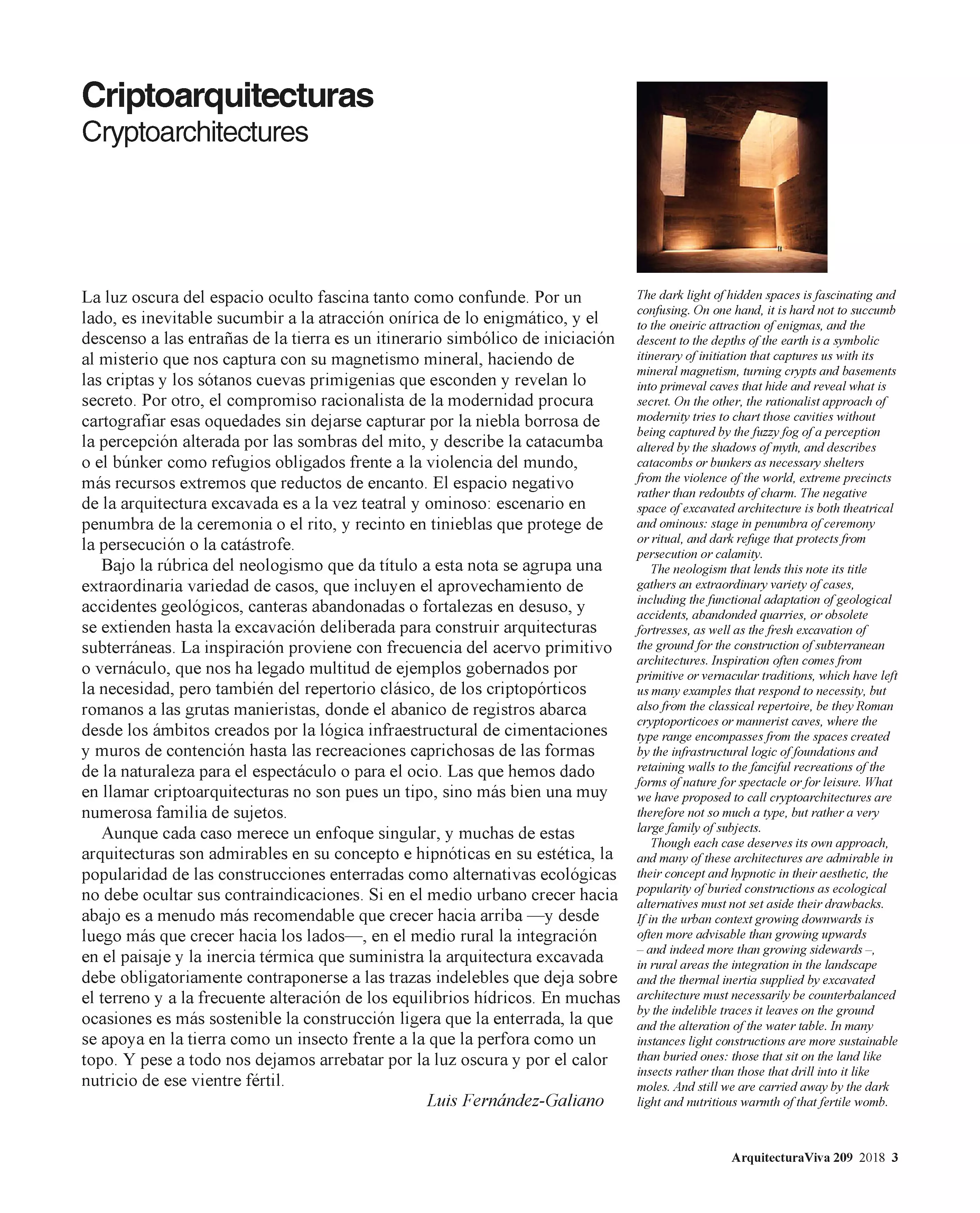 La luz oscura del espacio oculto fascina tanto como confunde. Por un lado, es inevitable sucumbir a la atracción onírica de lo enigmático, y el descenso a las entrañas de la tierra es un itinerario simbólico de iniciación al misterio que nos captura