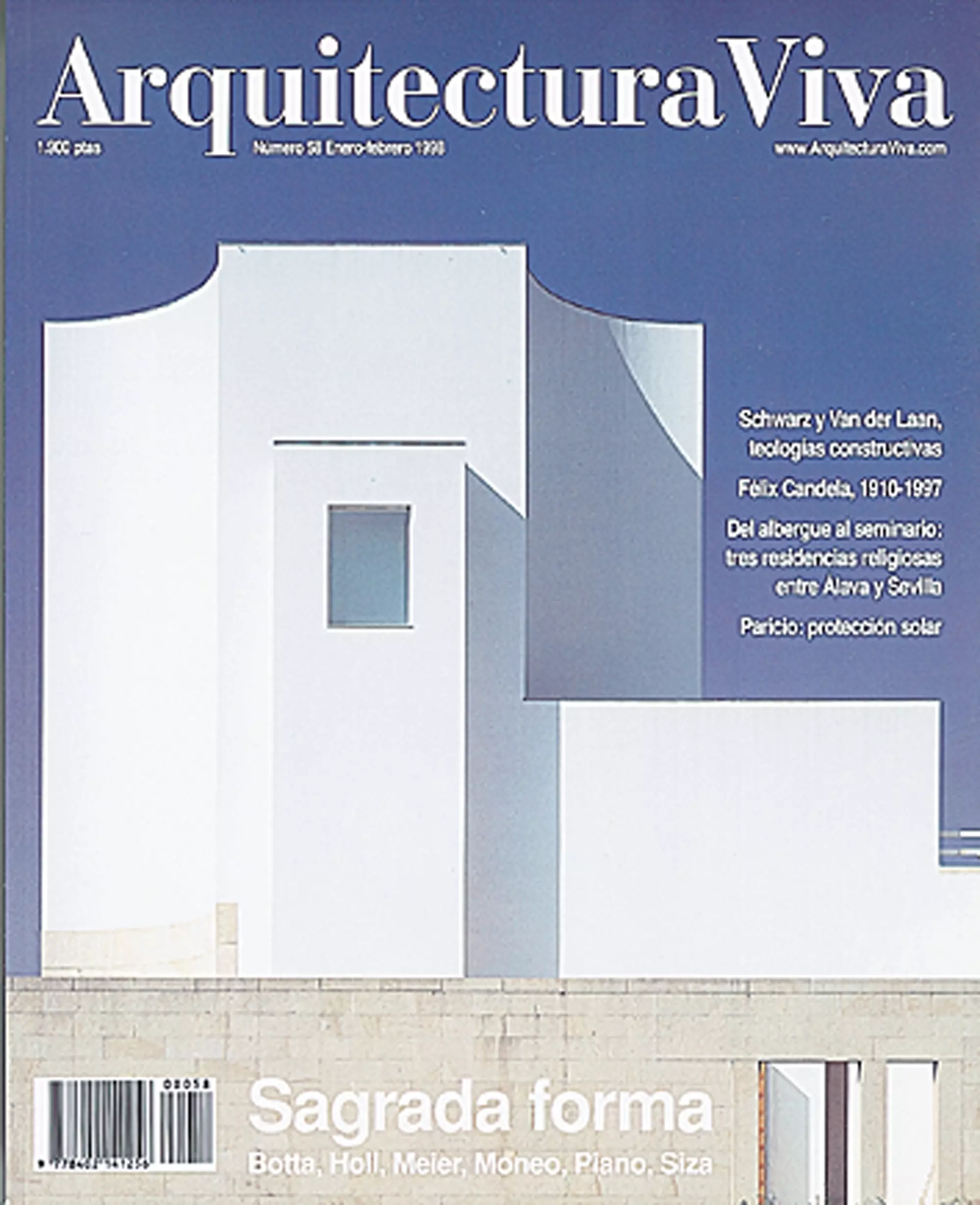Paloma Gil El culto de la modernidad Templos del siglo XXJusto Isasi Experiencias religiosas España, iglesia y posguerraIgnacio Vicens El espíritu de las formas Arquitectura y liturgiaEdificios: proyectos y realizacionesLiturgias de fin de siglo. La abstracción de las tradiciones locales y el protagonismo de la luz como símbolo de la fe y como elemento modelador del espacio caracterizan estas tres realizaciones religiosas: una parroquia culta y vernácula en el norte de Portugal, una capilla funeraria y mirador en los alpes suizos, y una pequeña iglesia escenográfica en un campus norteamericano.