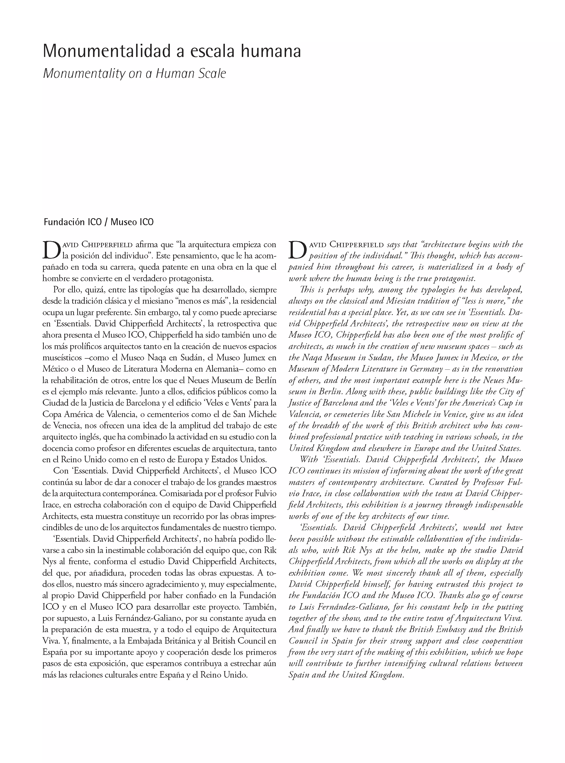 Monumentalidad a escala humana Monumentality on a Human Scale