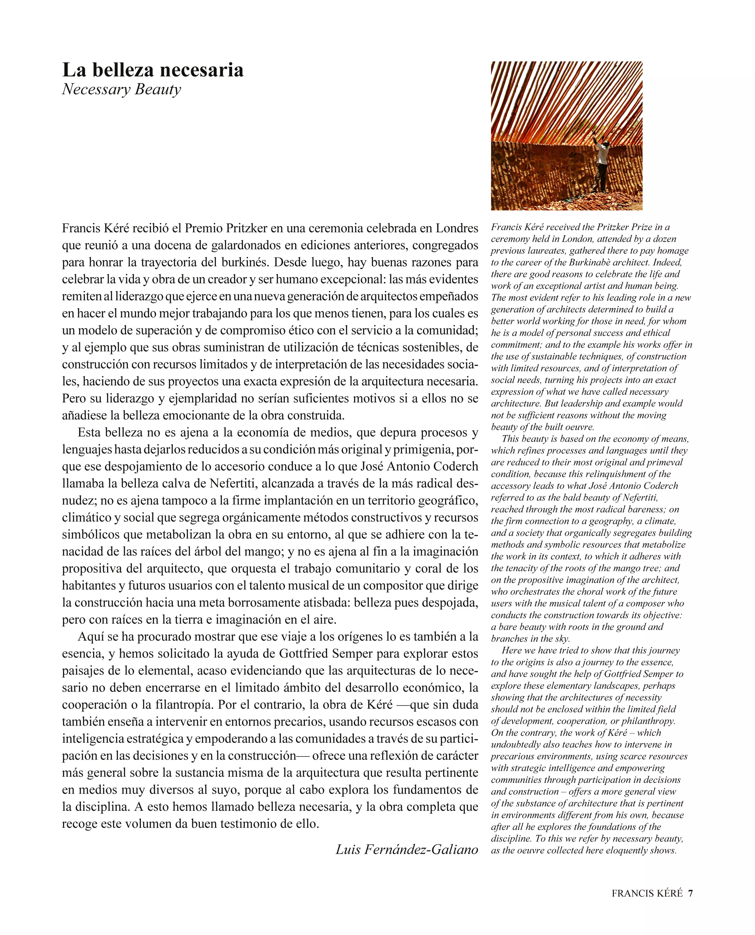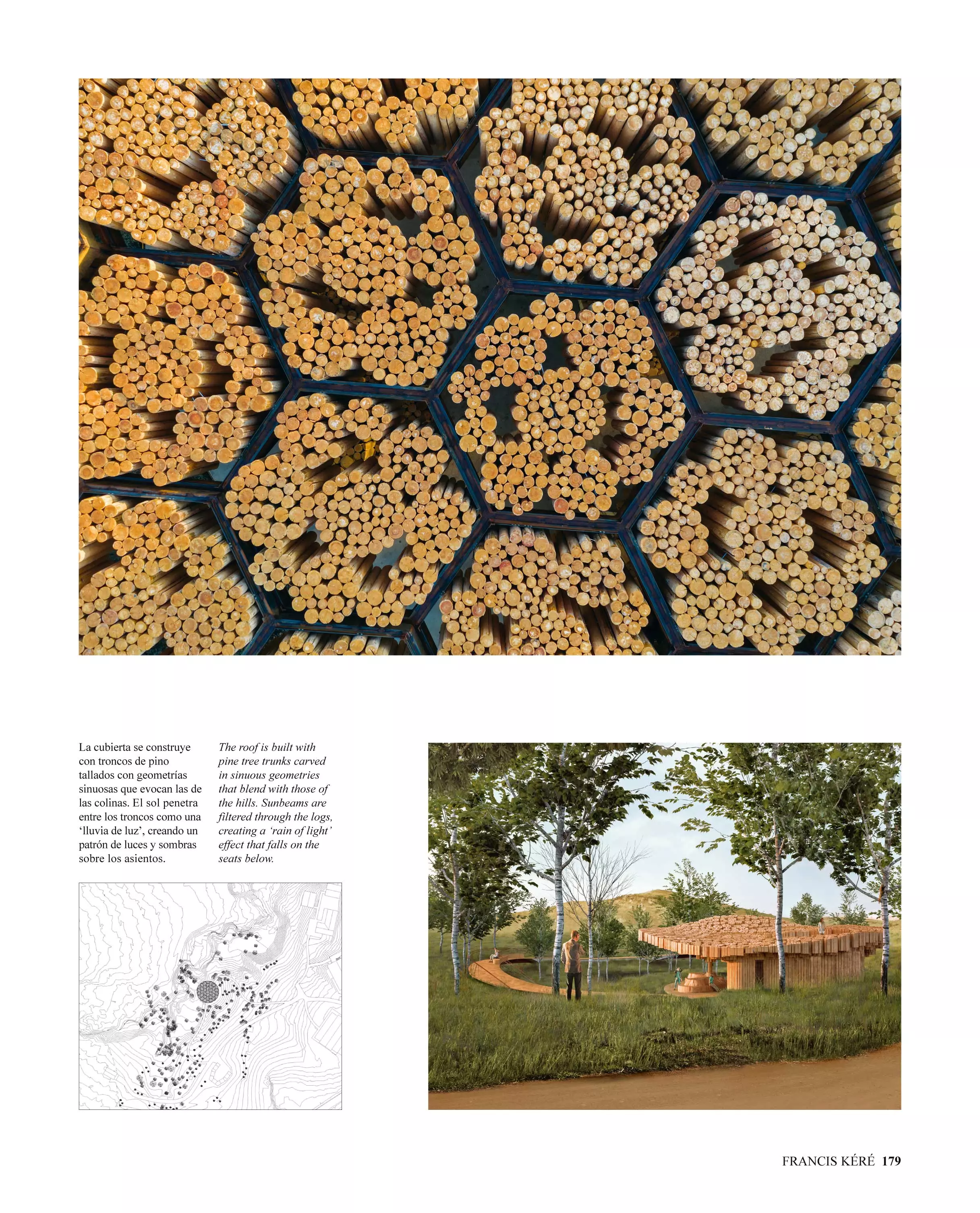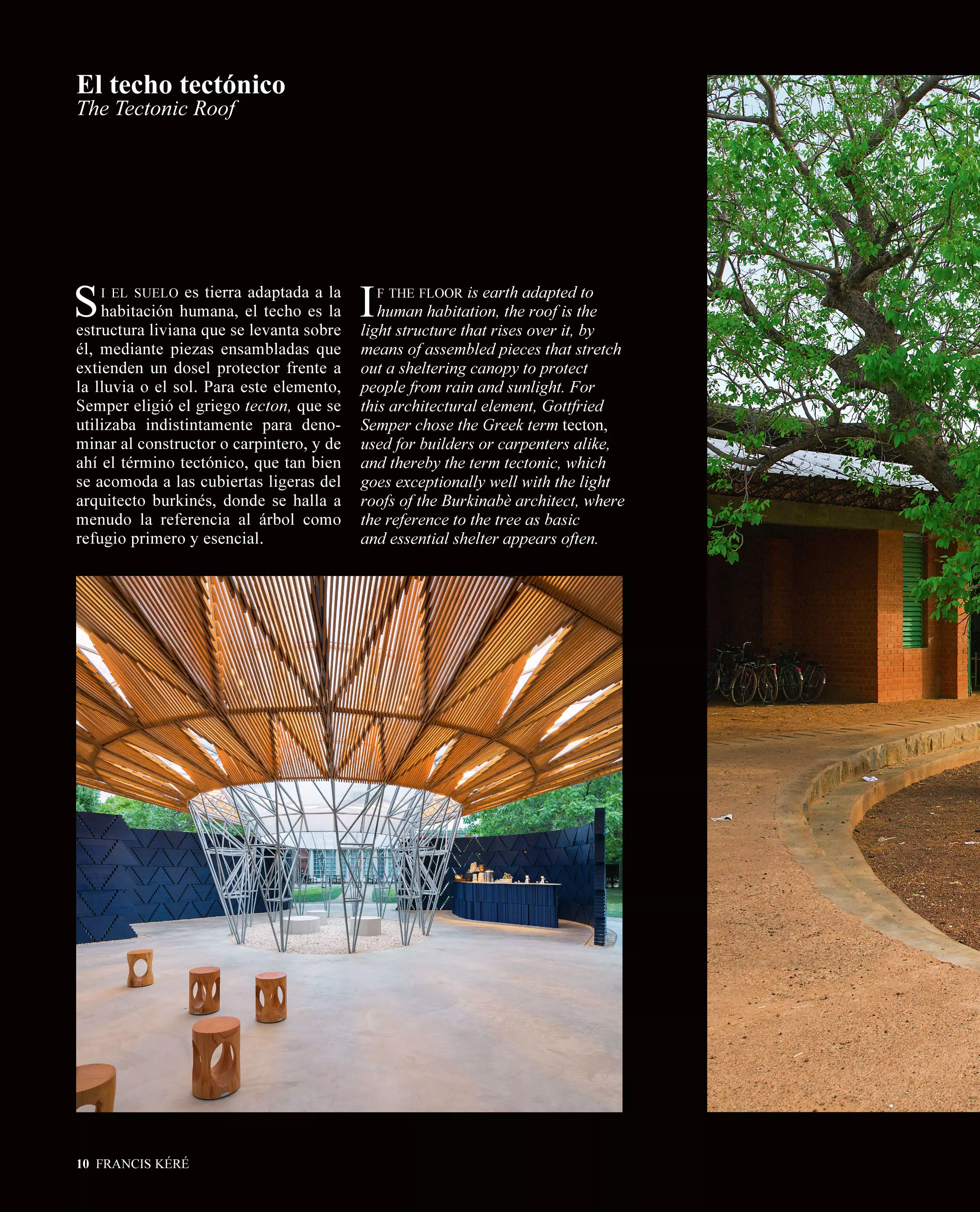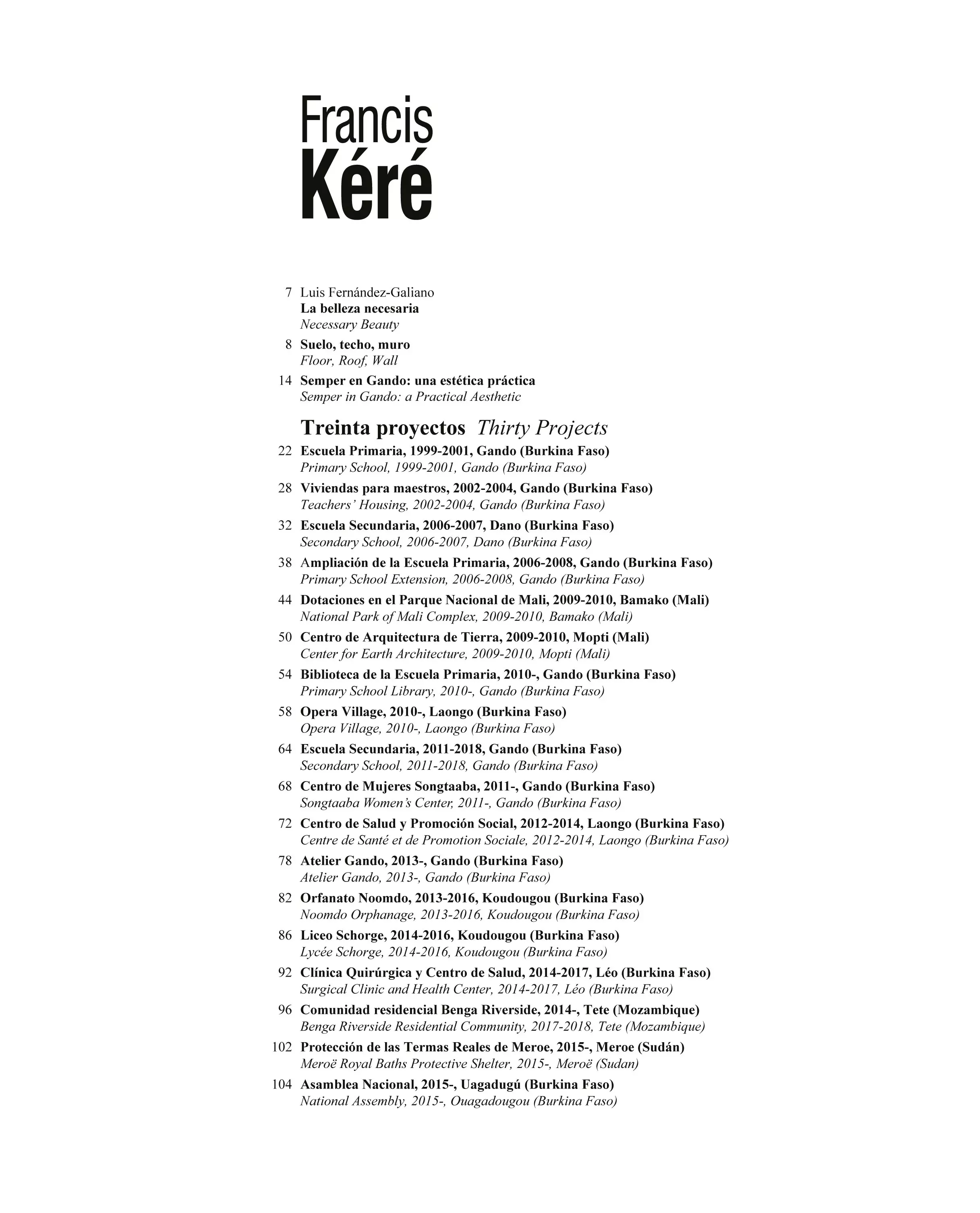 La editorial Arquitectura Viva reúne en un volumen de 184 páginas, encuadernado en tapa dura y en edición bilingüe español-inglés, las treinta principales obras y proyectos del burkinés junto a ocho de sus pabellones e instalaciones más relevantes.