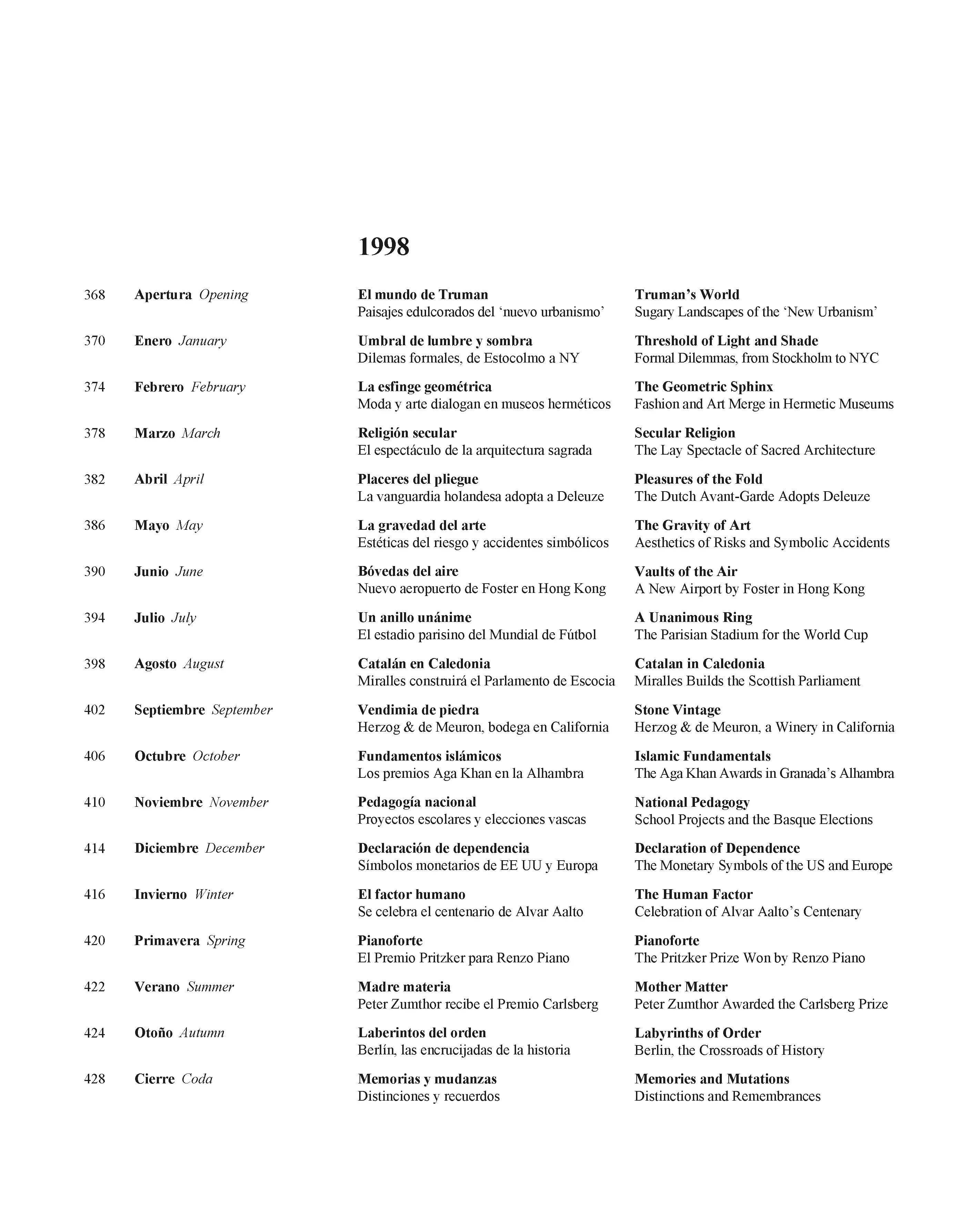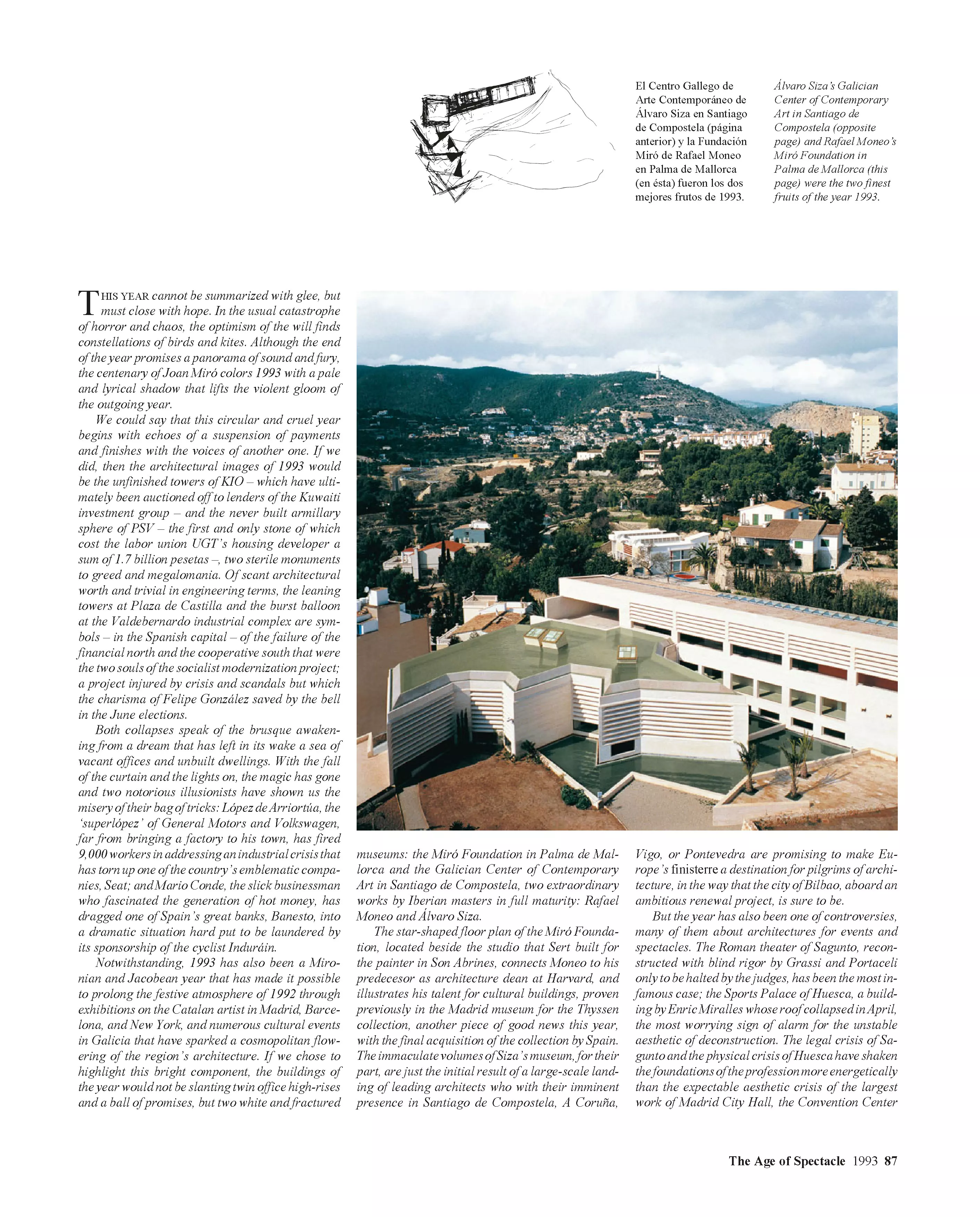 Luis Fernández-Galiano presenta una selección de los artículos escritos entre 1993 y 2006 para El País, diario donde se ocupó durante esos años de la página semanal de arquitectura. Con el título Años alejandrinos, que evoca a la vez su extensión cronológica y su carácter de crónica, el libro se compone de dos volúmenes que retratan las vicisitudes de la arquitectura en el tránsito entre los siglos XX y XXI. El primero de ellos, La edad del espectáculo, incluye los últimos años del siglo pasado, un periodo de prosperidad optimista cuya mejor expresión fue el mediático Museo Guggenheim de Bilbao, y continúa con Tiempo de incertidumbre, una segunda parte que se extiende hasta 2006. La colección de textos, que entrelazan la arquitectura con el arte, el pensamiento, la economía o la política, está ilustrada con más de 2.500 imágenes, e incluye cerca de 2.000 referencias a los protagonistas de las realizaciones y los debates de ese tiempo. Los artículos fueron calificados por Rafael Moneo de «pequeñas obras maestras», describiéndolos como «bien construidos, brillantes en la elección de las metáforas, informados, sutiles…», y asegurando que «quienquiera que estudie en el futuro lo que ha sido la historia de la arquitectura en estos años deberá acudir a esta rica cantera de escritos».